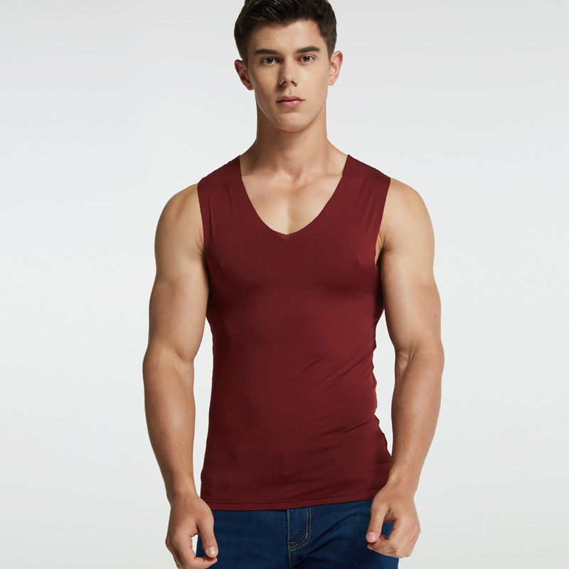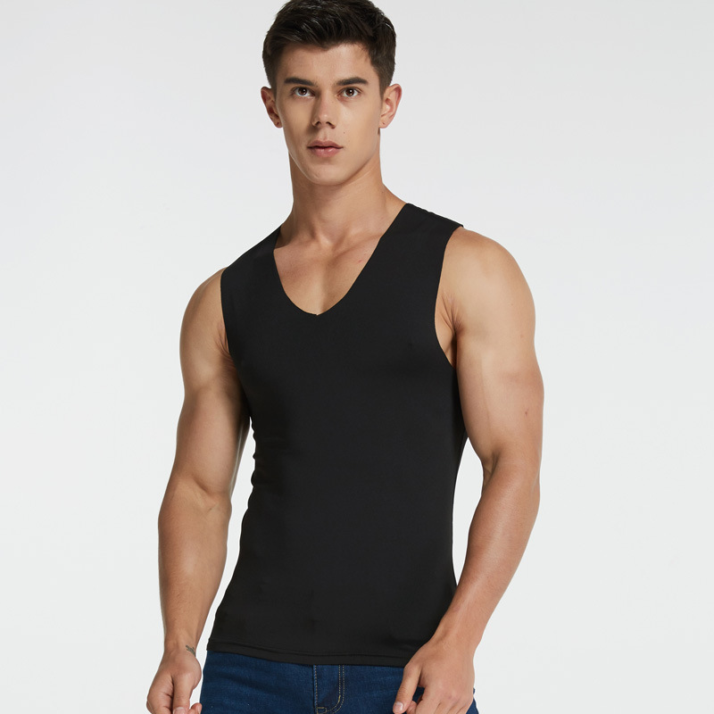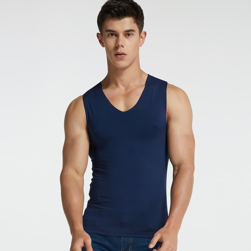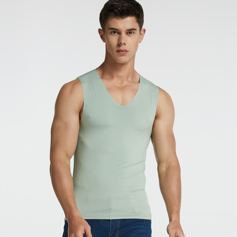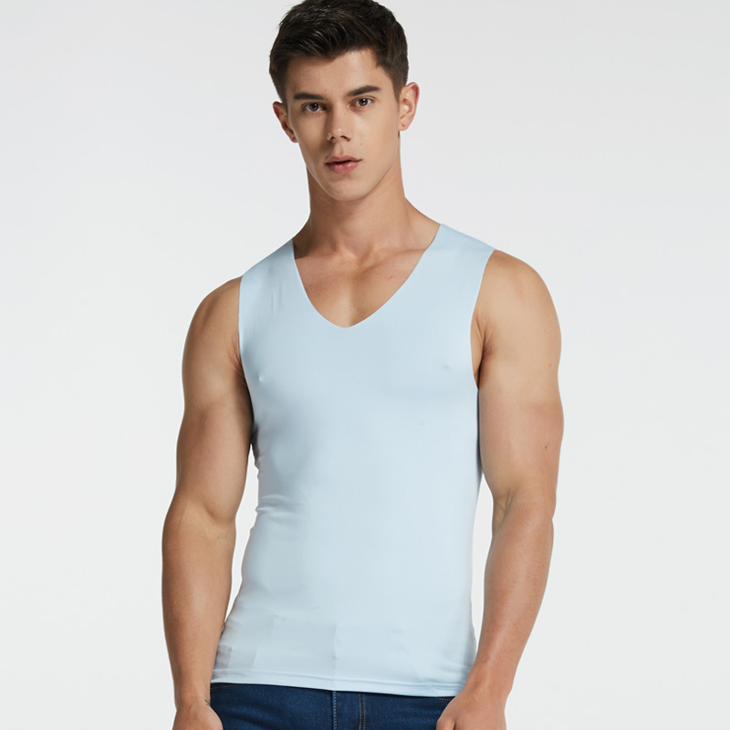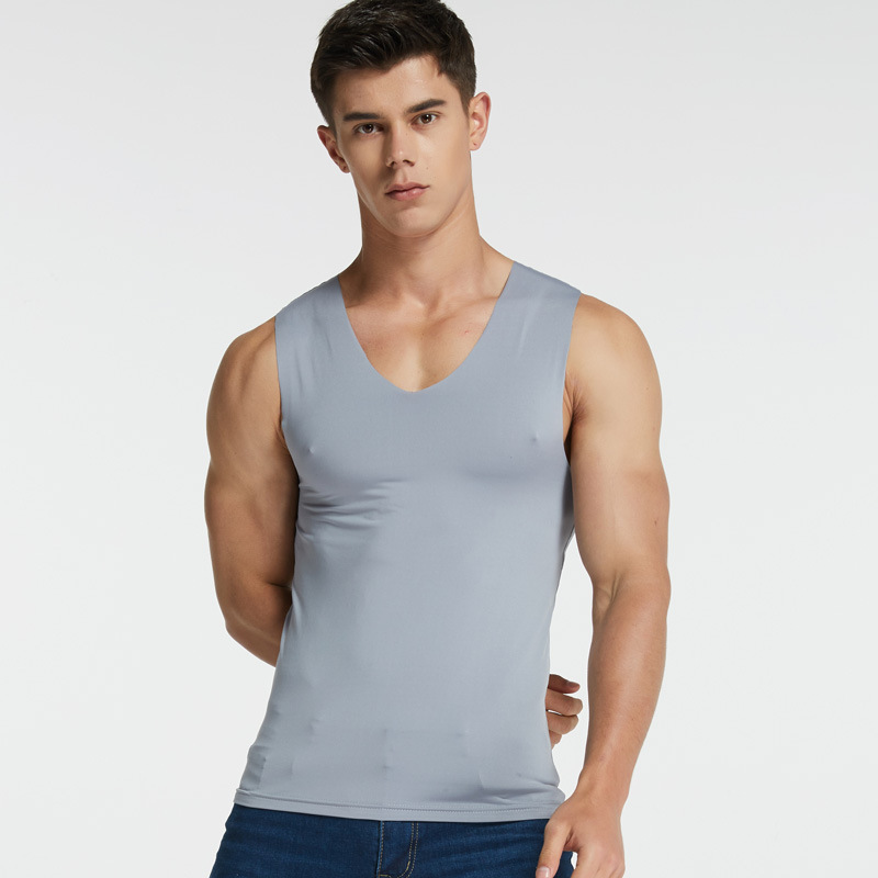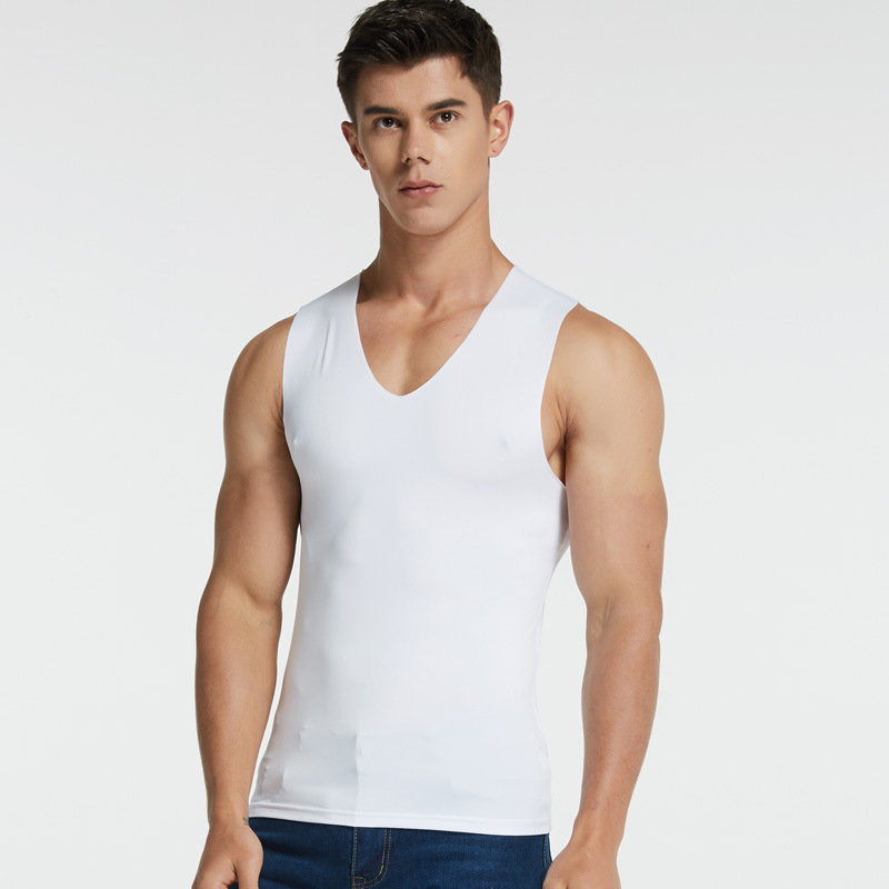 남성용 밀크 아이스 실크 무봉제 조끼 여름 슬림핏 타이트한 신축성 스포츠 빠른 건조 넓은 어깨 흰색 민소매 통기성스토어 가기
