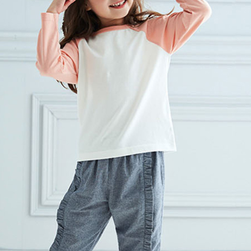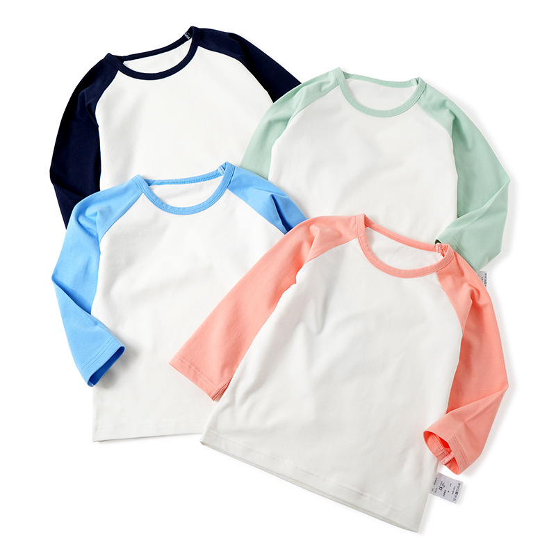 아동용 고탄력 면 긴팔 티셔츠 봄, 남학생과 여학생을 위한 가을과 겨울 백킹 셔츠 일본식 심플 90-150스토어 가기