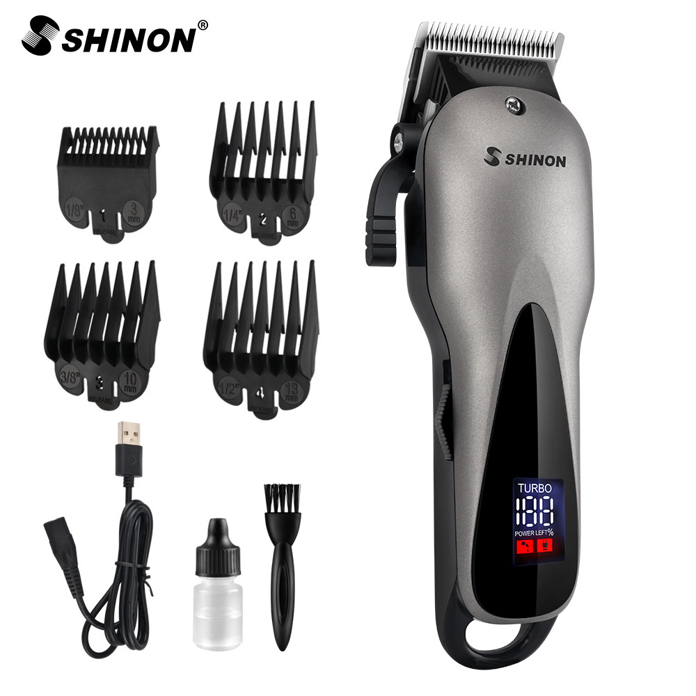 국경 간 새로운 LED 전기 클리퍼 충전식 전기 클리퍼 라이트 헤드 푸시 화이트 이발 오일 헤드 그라디언트 낙서 헤어 클리퍼