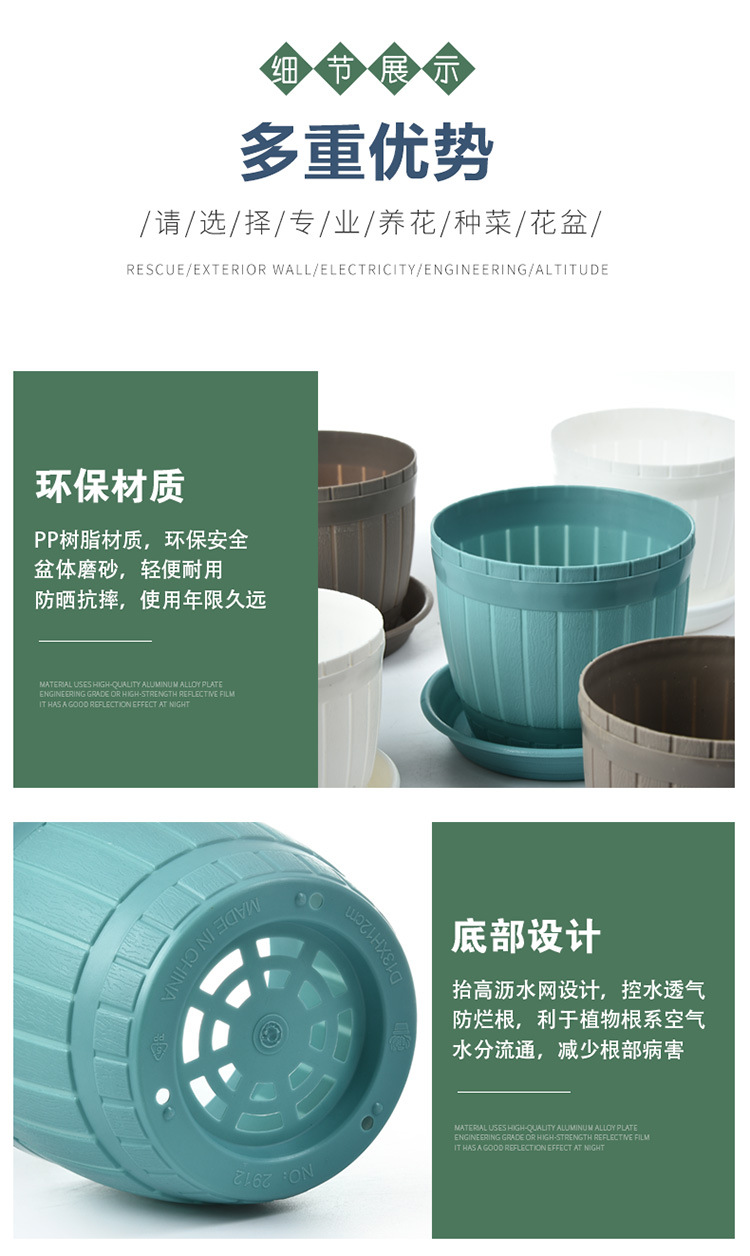공장 직접 판매 마구간 간단한 모조 나무 배럴 즙이 많은 플라스틱 둥근 작은 꽃 냄비