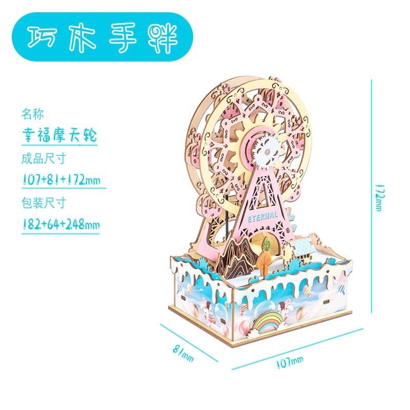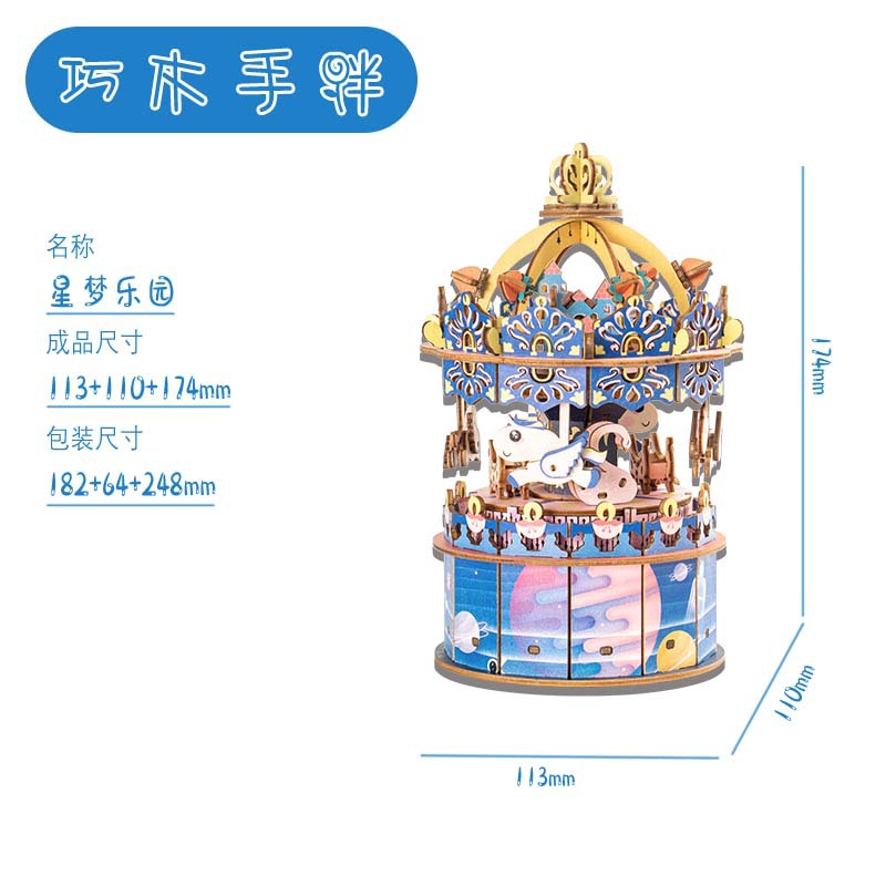 나무 3DIY 뮤직 박스 회전 목마 어린이 퍼즐 장난감 소년과 소녀 생일 선물 도매스토어 가기