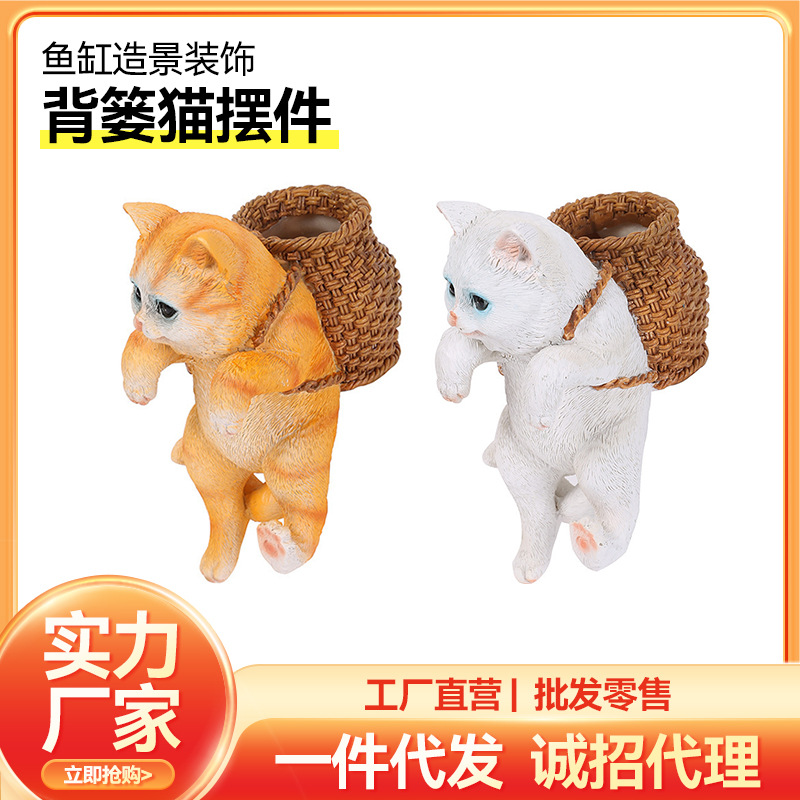 스팟 도매 물고기 탱크 조경 귀여운 배낭 고양이 크리 에이 티브 물고기 탱크 장식 배낭 고양이 장식품