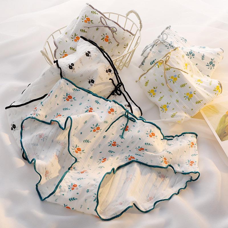 카톡 꽃 언어 여성 속옷 여성 순면 클래스 A 소녀의 중간 허리 순면 항균 소녀 브리프 반바지스토어 가기