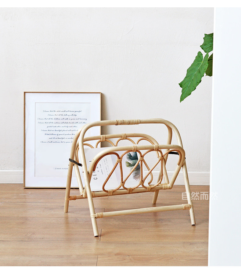 자연스럽게 작은 등나무 책장 인도네시아 진짜 등나무 손으로 짠 접이식 육상 거치형 신문 보관 잡지 랙
