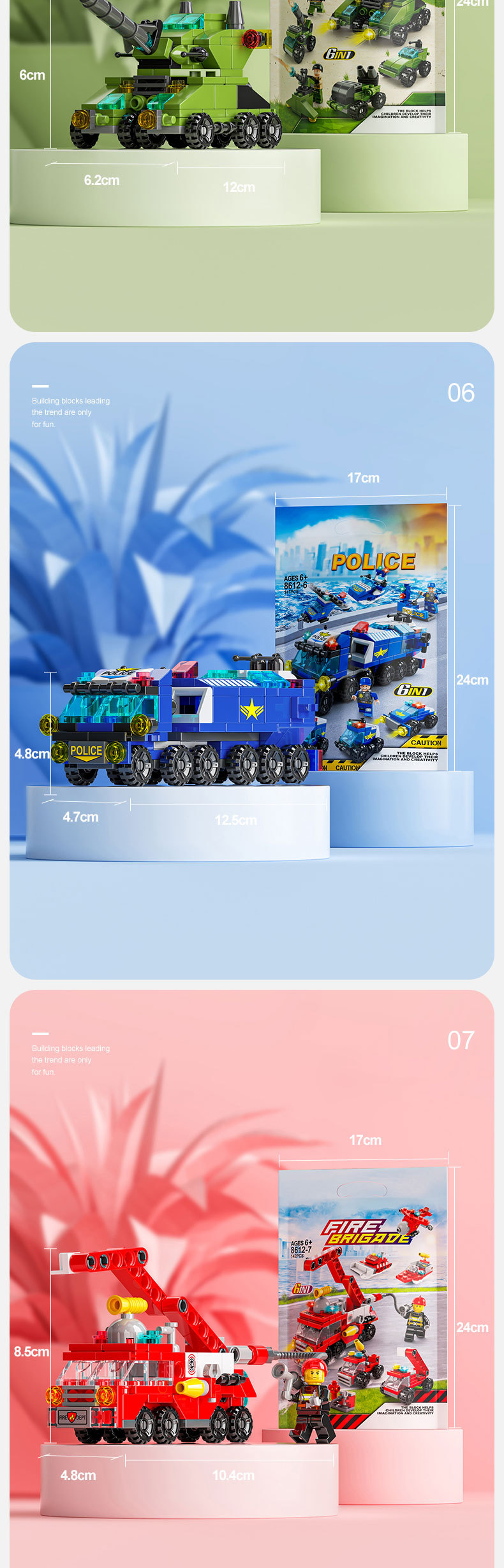 6 in 1 가방 소방차 경찰차 구조 호환 레고 장난감 블록 어린이 소년 도매 조립 퍼즐스토어 가기