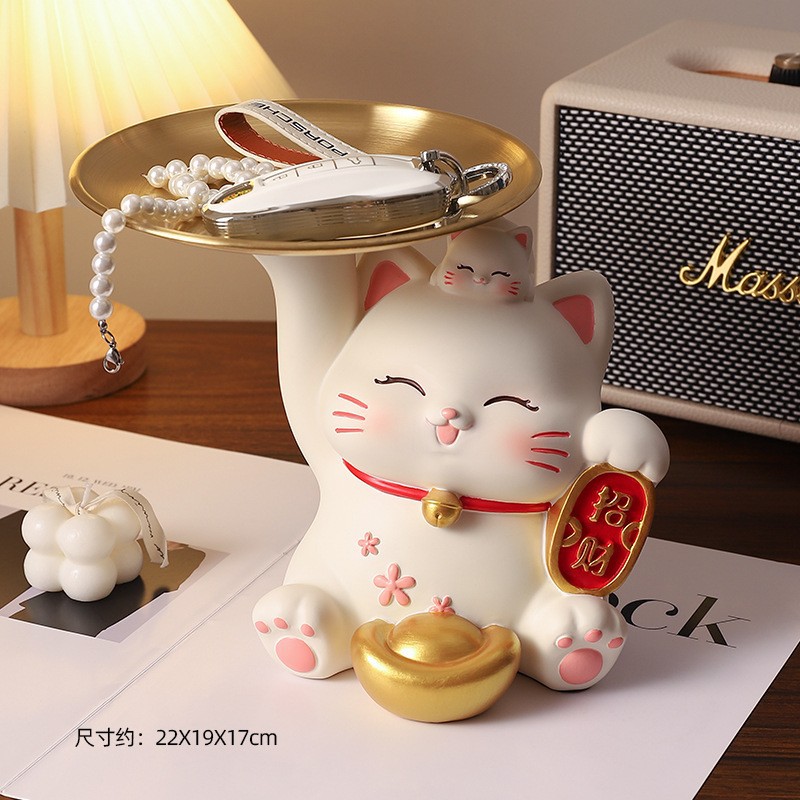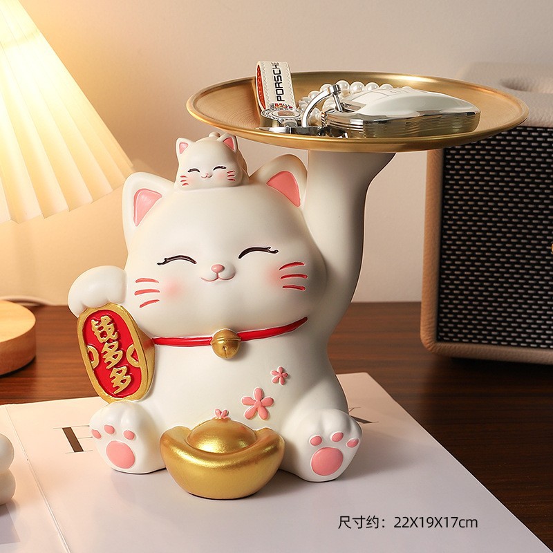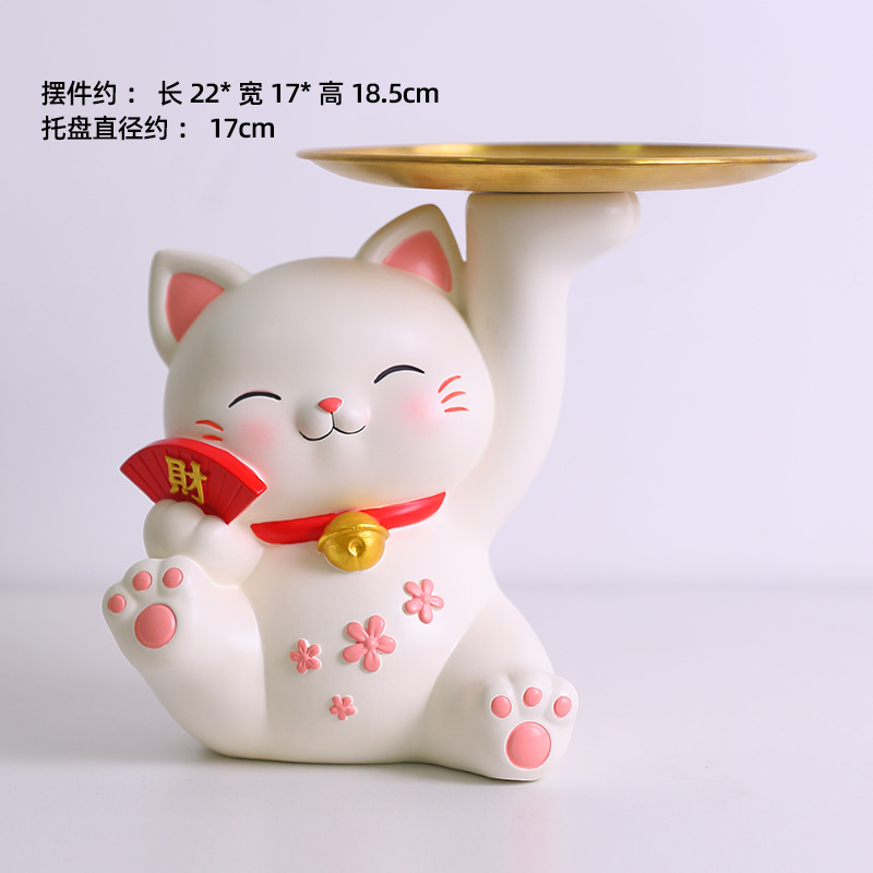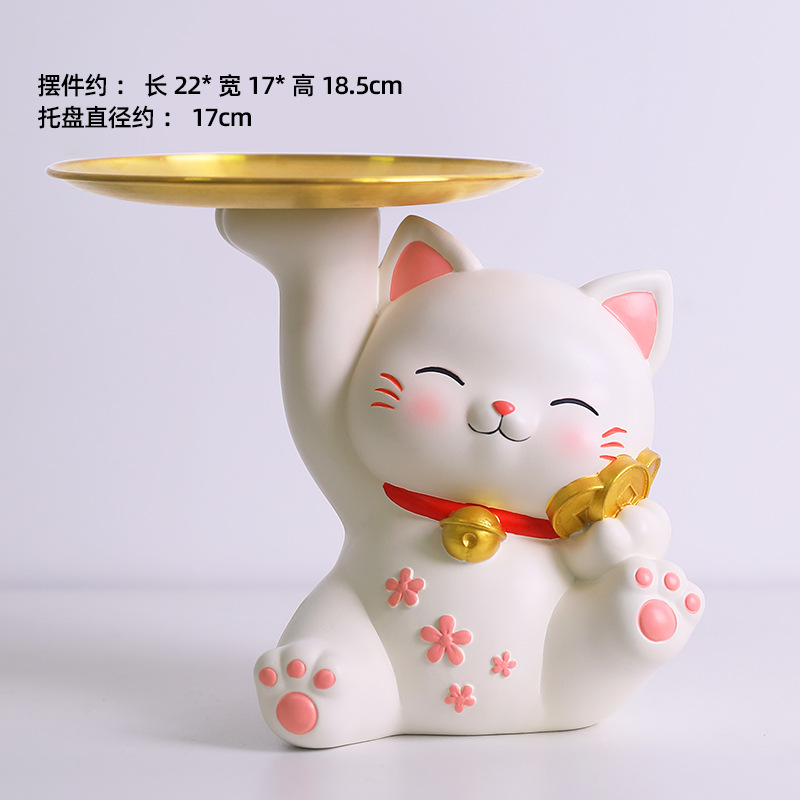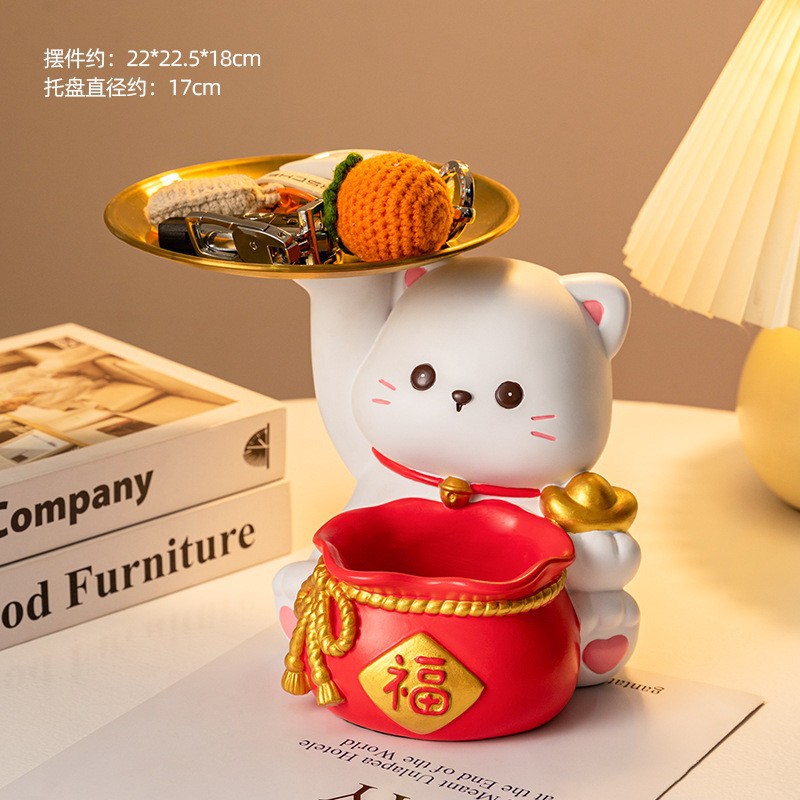 행운의 고양이 장식품 가벼운 럭셔리 고급 입구 보관 트레이 장식품 집들이 거실 데스크탑 장식 선물