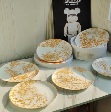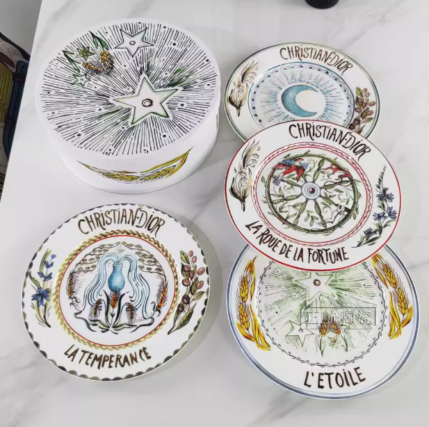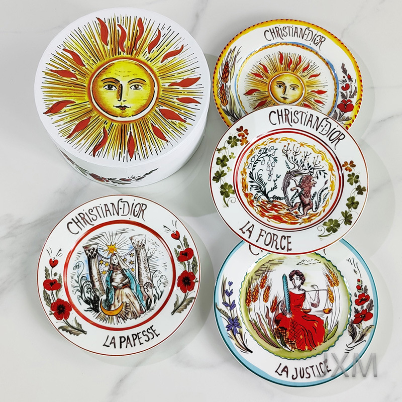 D의 고급 절묘한 본차이나 서양 디너 플레이트 태양, 달, 별 10inch 플랫 플레이트 선물 상자 4피스 세트 세라믹 플레이트 도매스토어 가기