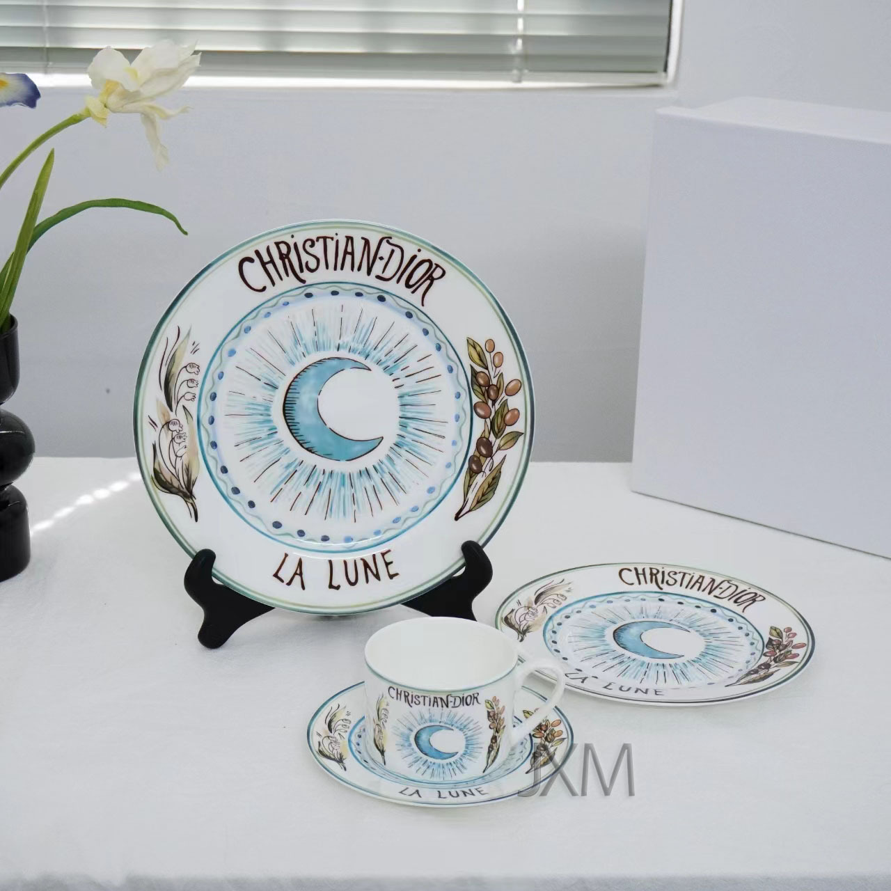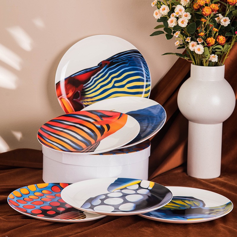 D의 고급 절묘한 본차이나 서양 디너 플레이트 태양, 달, 별 10inch 플랫 플레이트 선물 상자 4피스 세트 세라믹 플레이트 도매