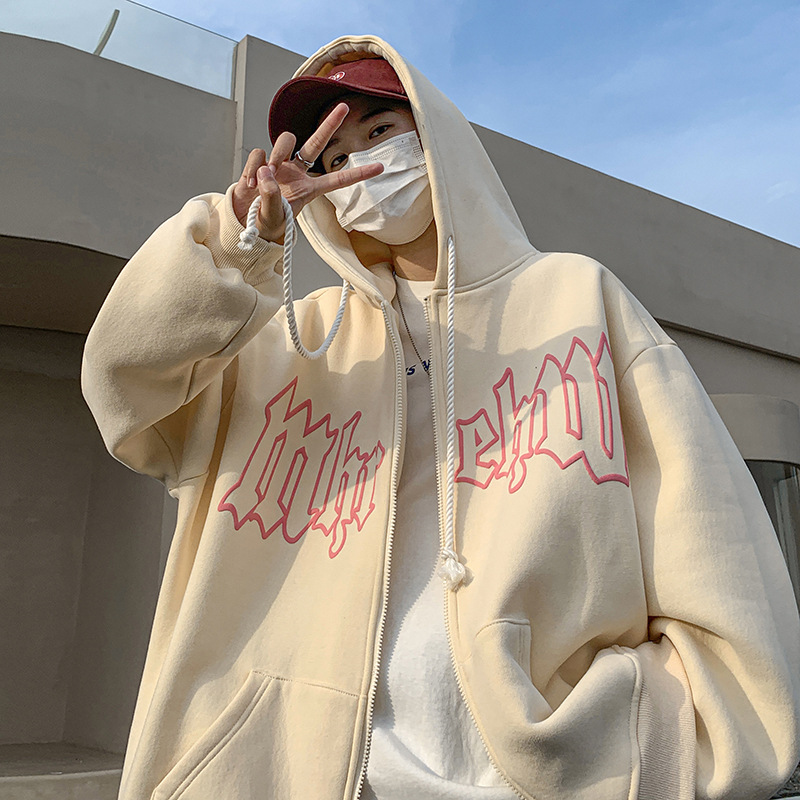 가디건 스웨터 남자의 가을과 겨울 한국 유행 모든 매치 캐주얼 탑 의류 홍콩 스타일 하이 스트리트 루즈한 후드 재킷스토어 가기