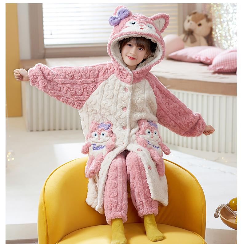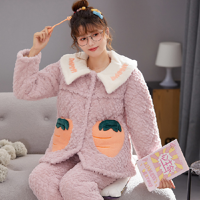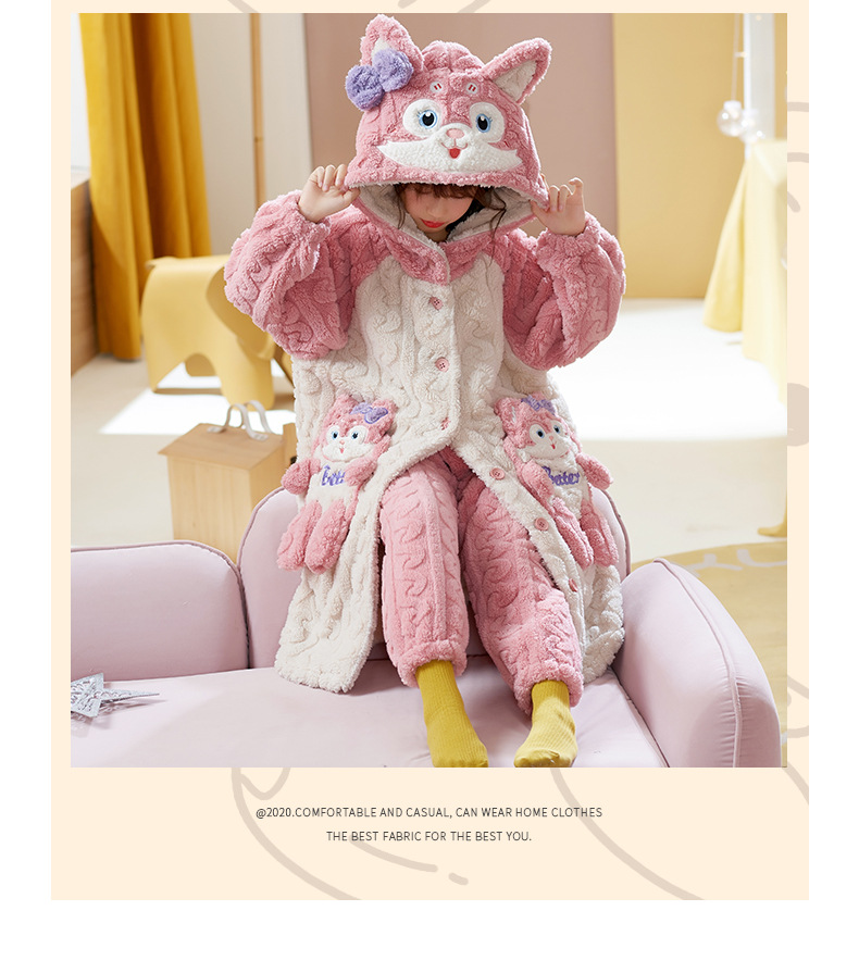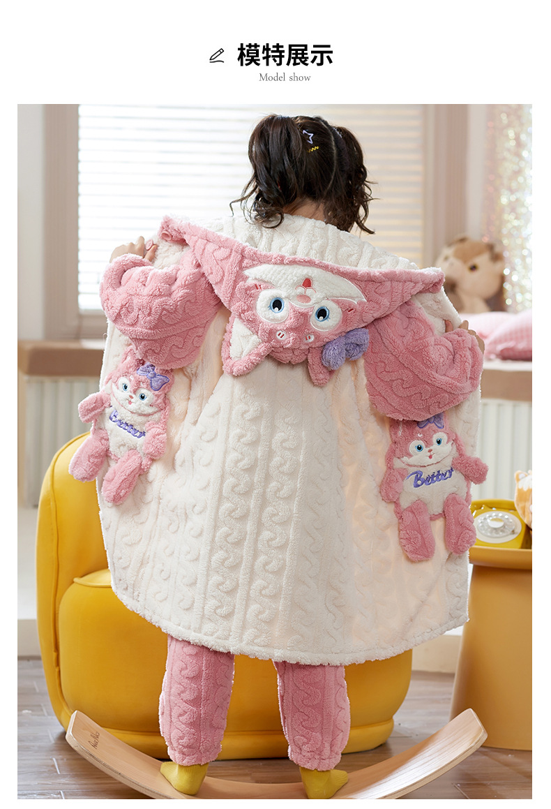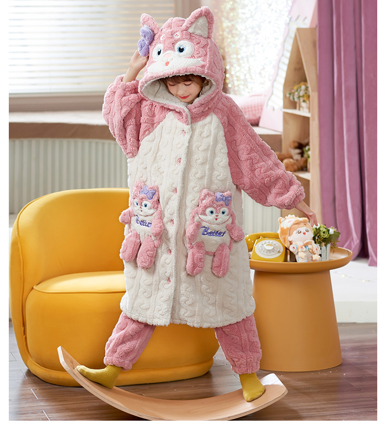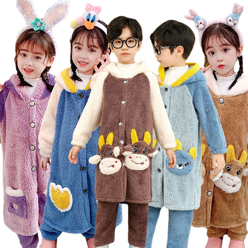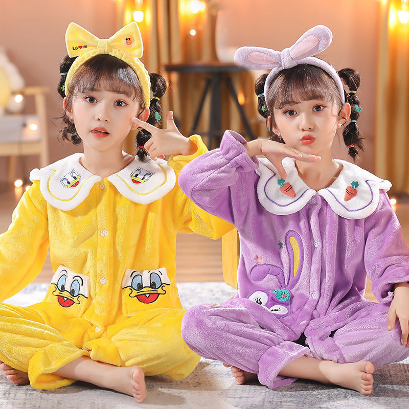 어린이 잠옷 가을과 겨울 여아 플란넬 두꺼운 따뜻한 세트 여아 산호 양털 잠옷 큰 어린이 가정 의류스토어 가기