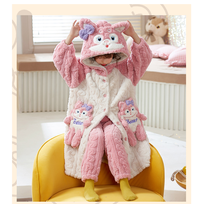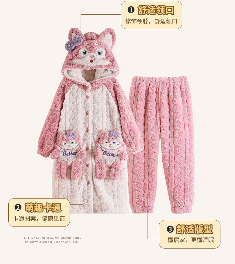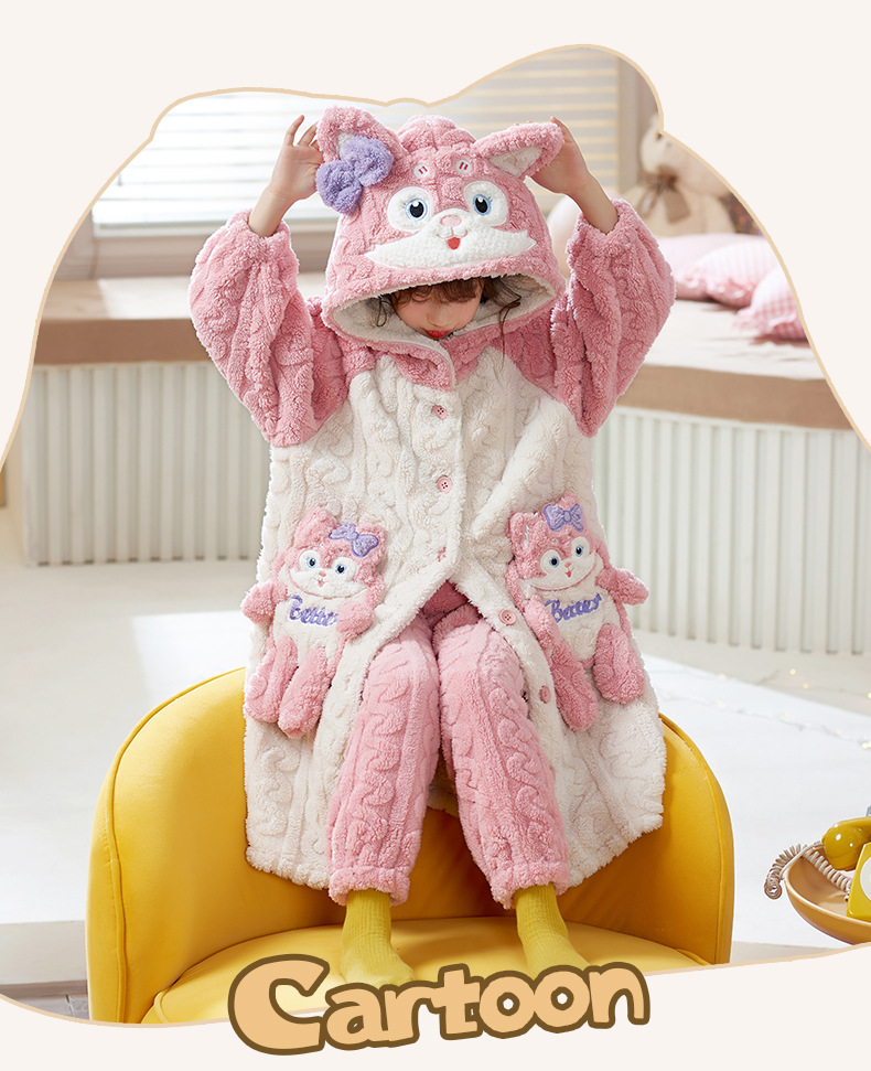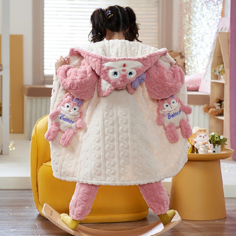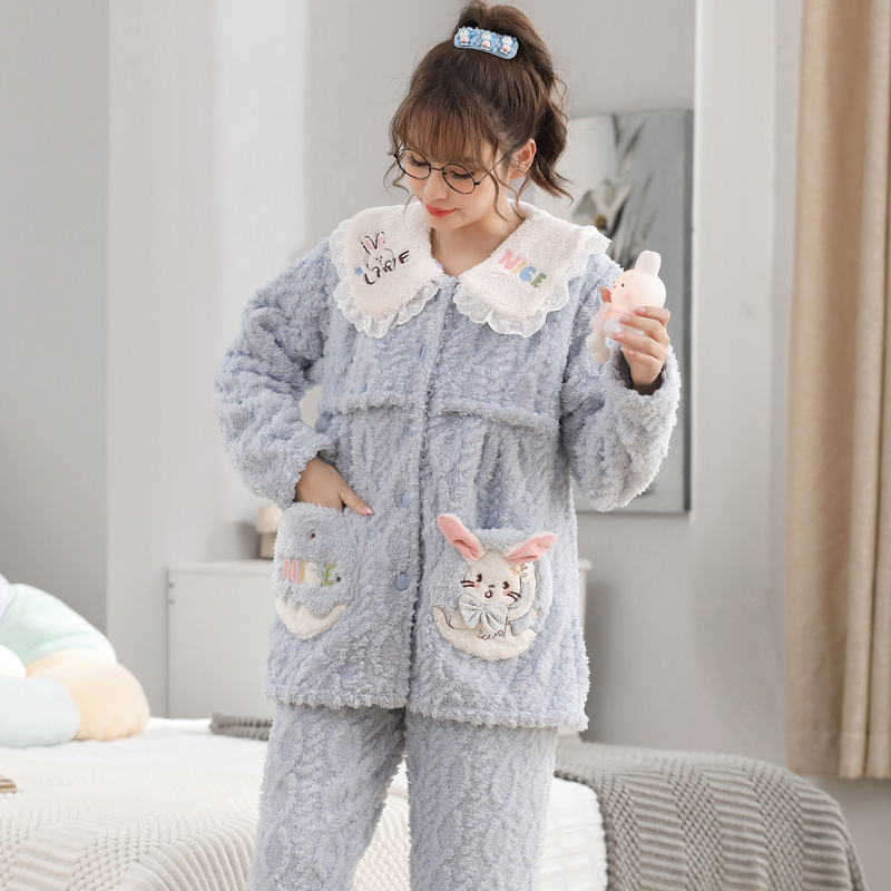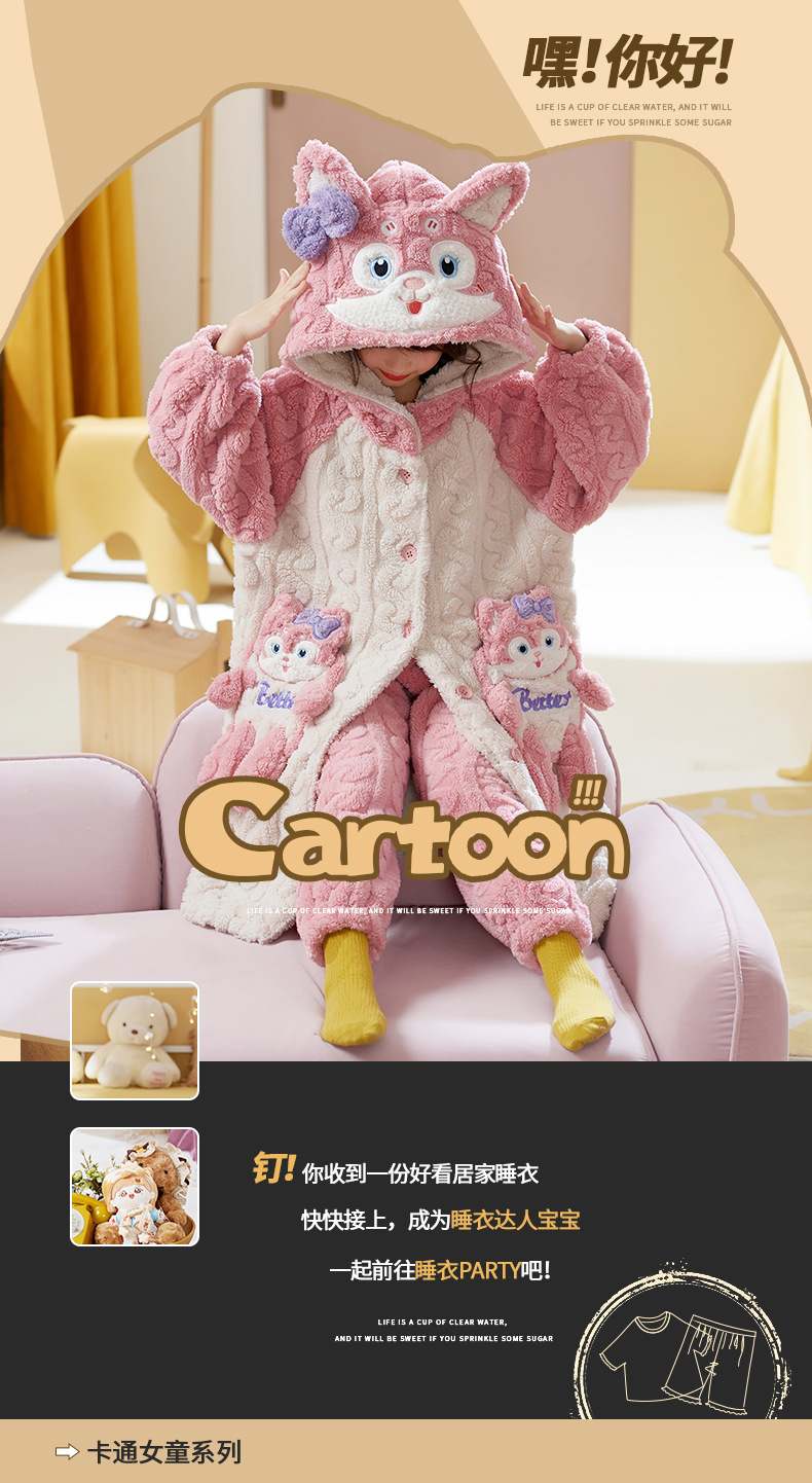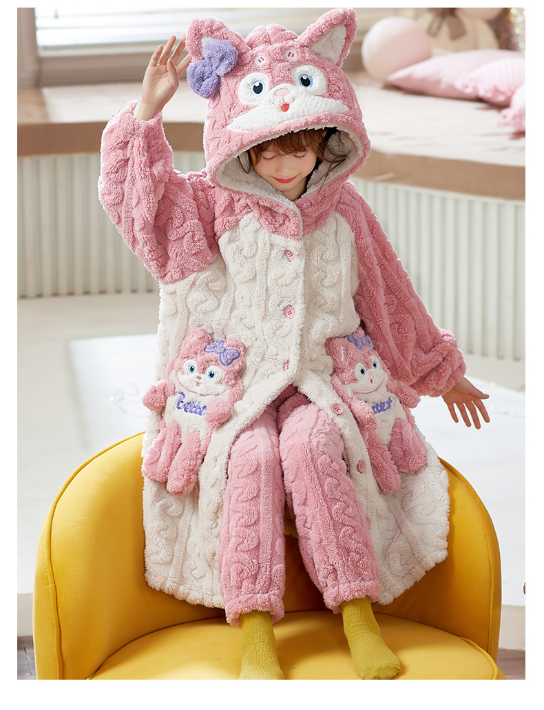 어린이 잠옷 가을과 겨울 여아 플란넬 두꺼운 따뜻한 세트 여아 산호 양털 잠옷 큰 어린이 가정 의류스토어 가기