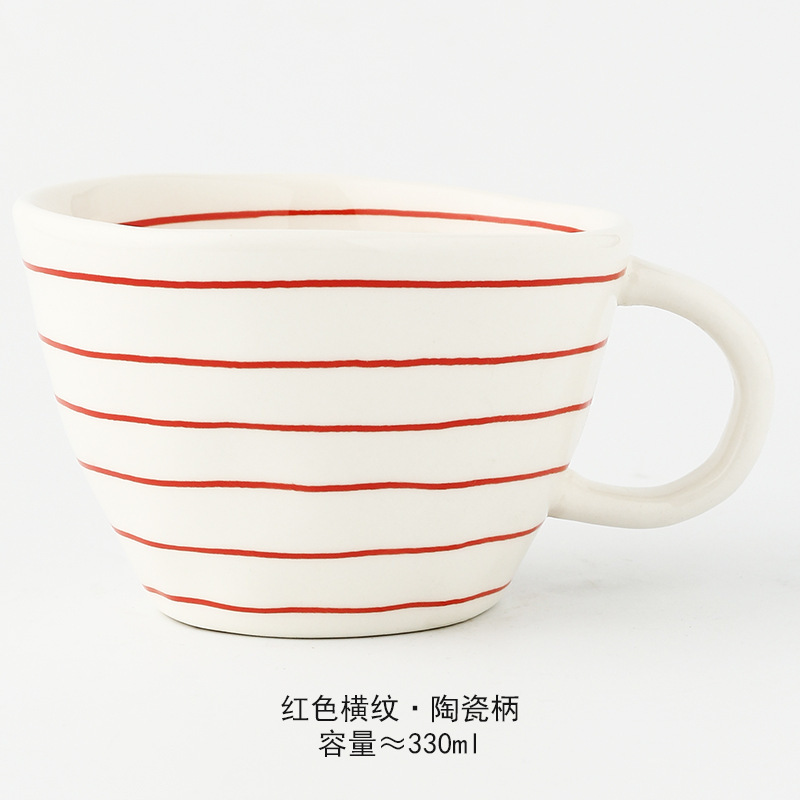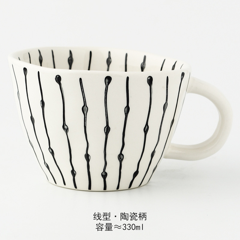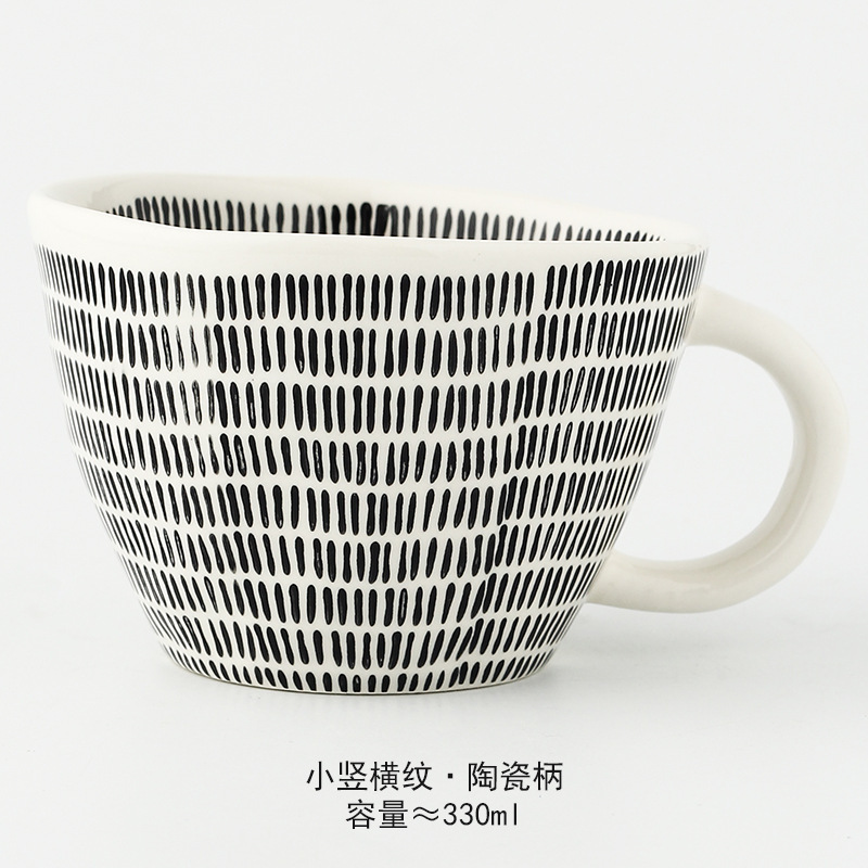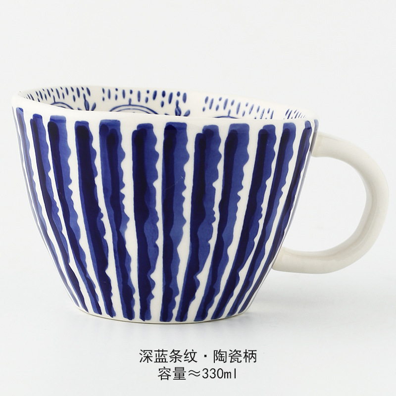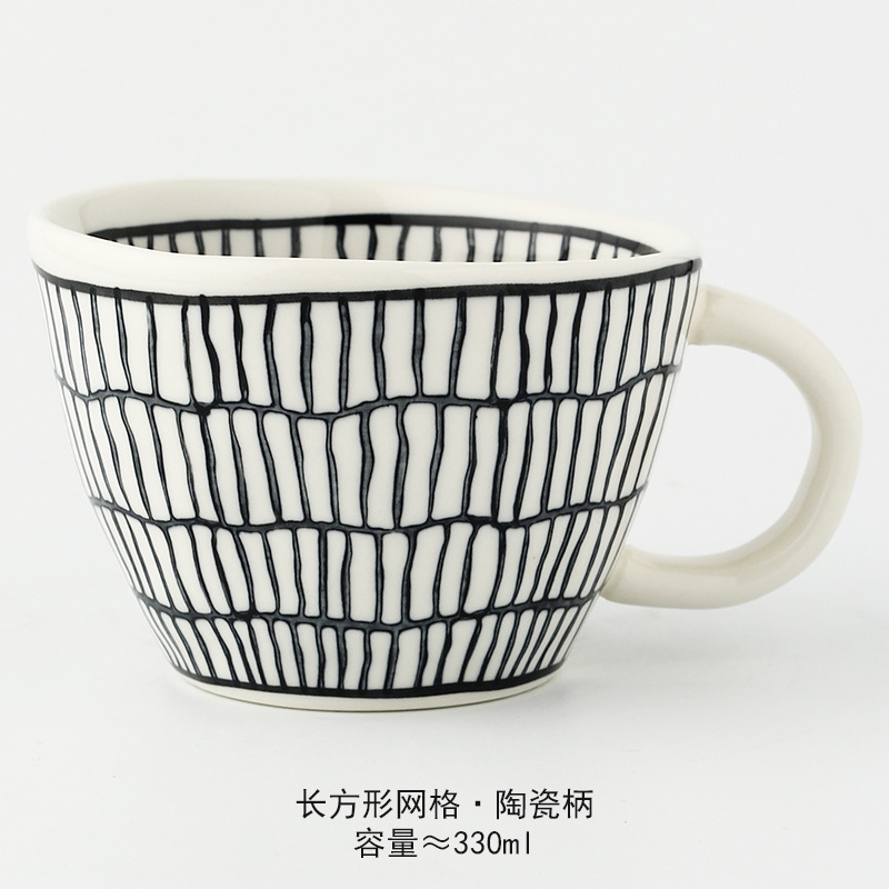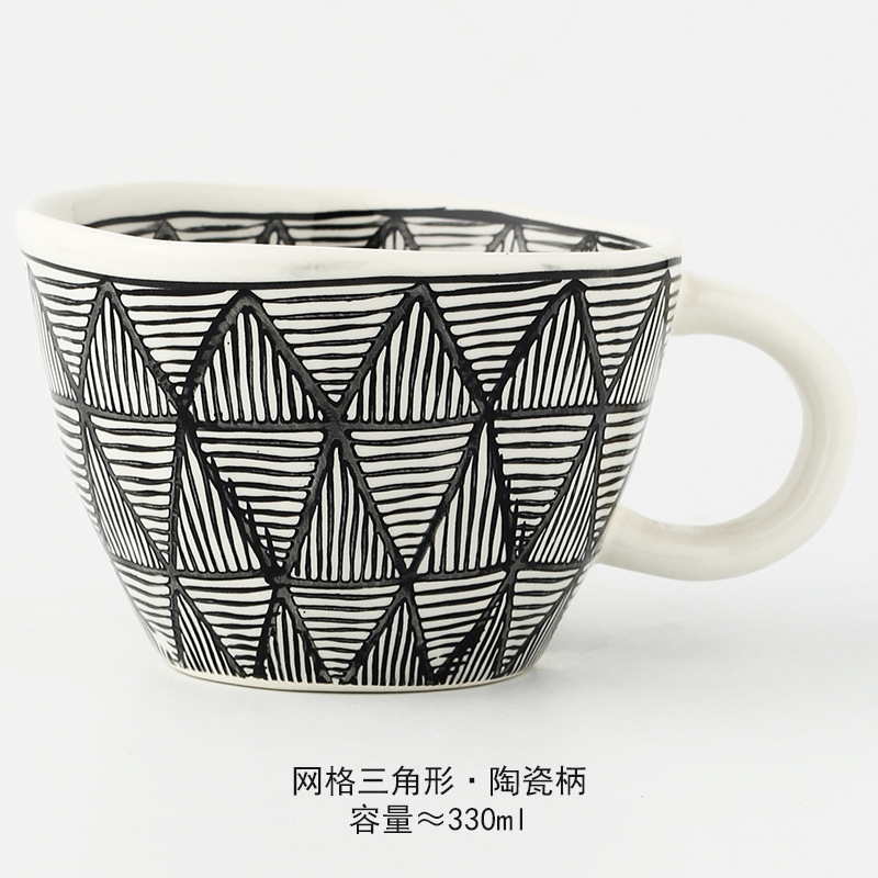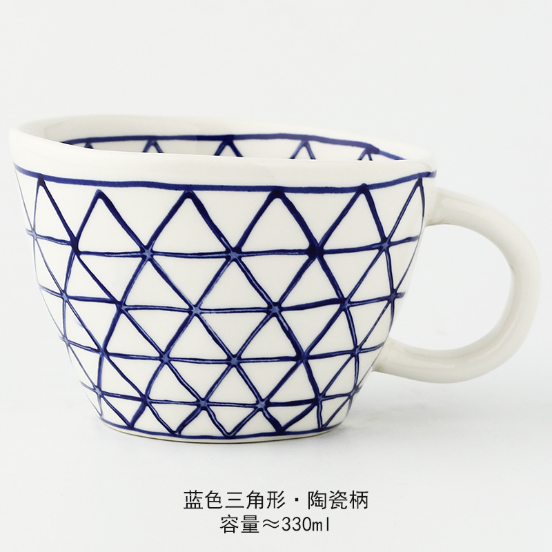 일본식 기하학적 손으로 반죽하는 불규칙한 넓은 입 세라믹 머그잔 손으로 그린 언더 유약 컬러 아침 우유 오트밀 컵