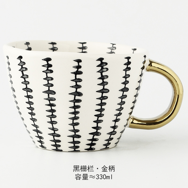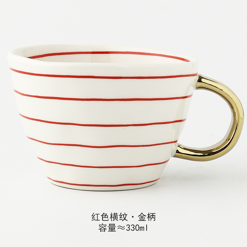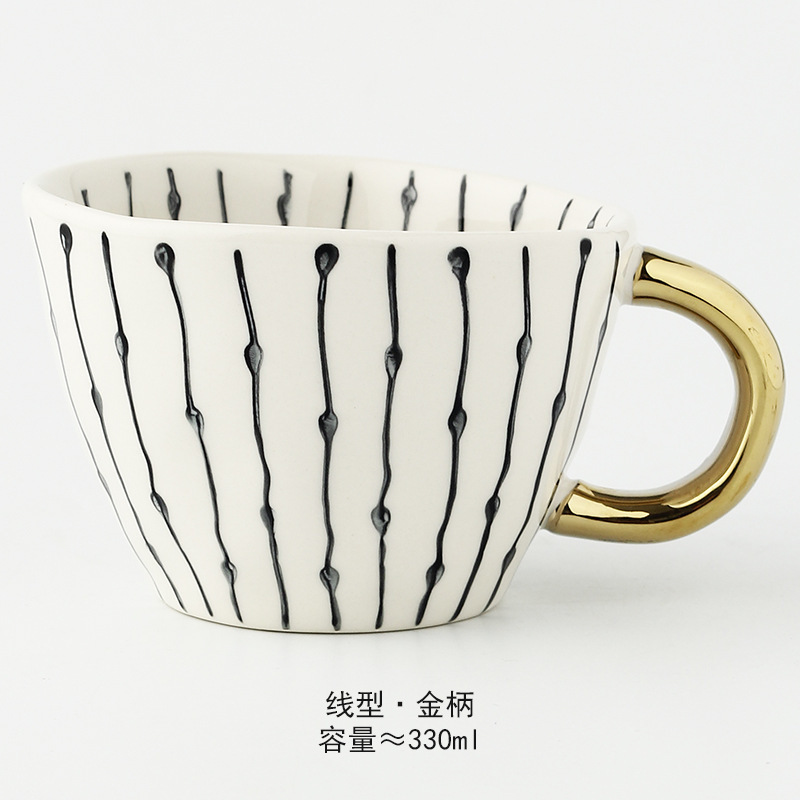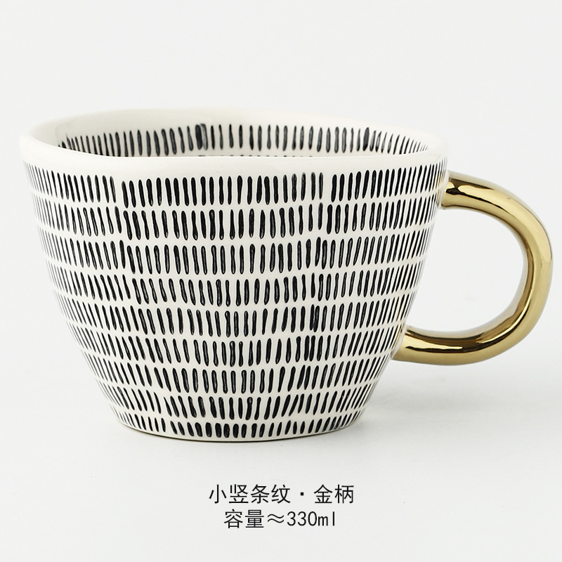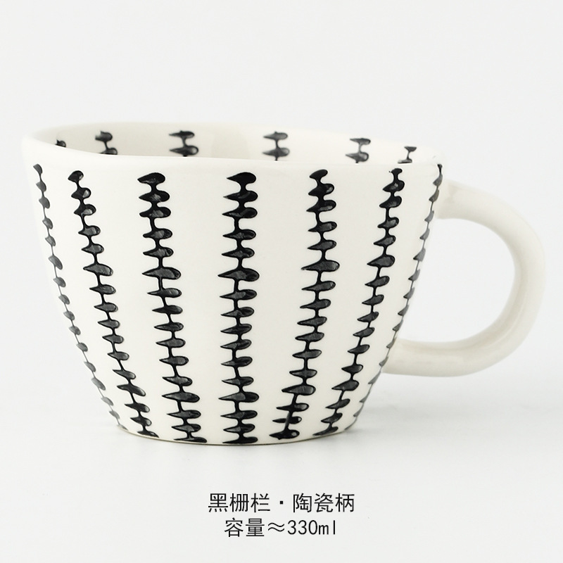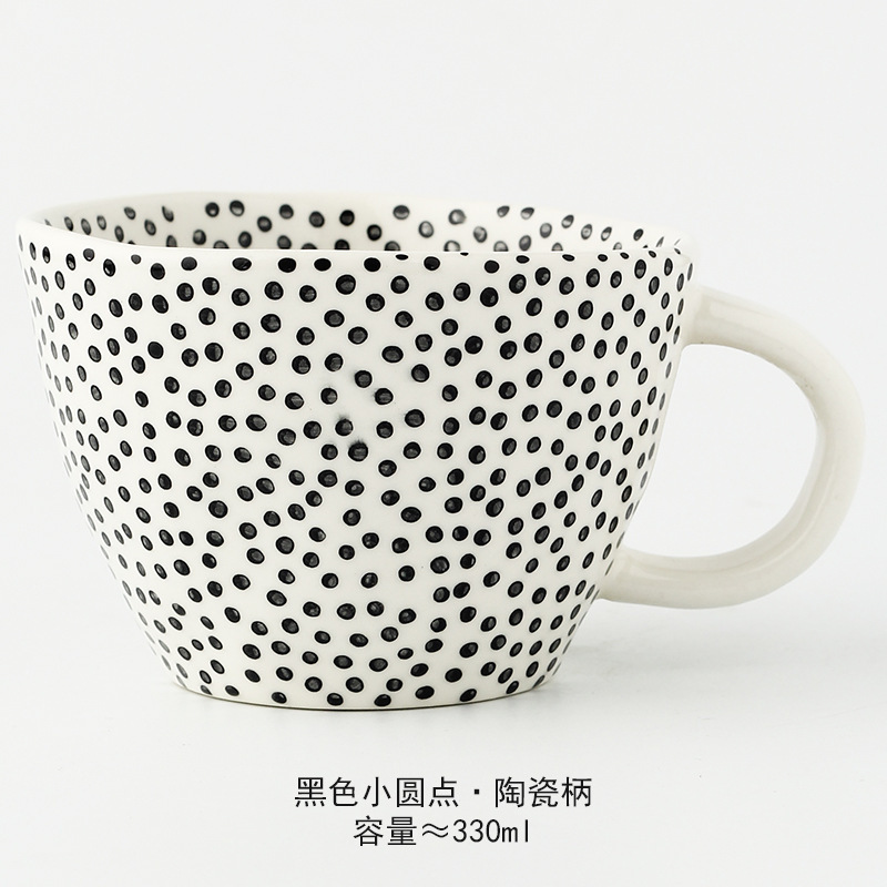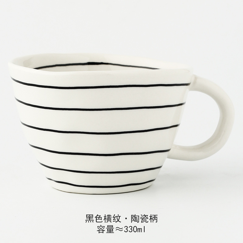 일본식 기하학적 손으로 반죽하는 불규칙한 넓은 입 세라믹 머그잔 손으로 그린 언더 유약 컬러 아침 우유 오트밀 컵