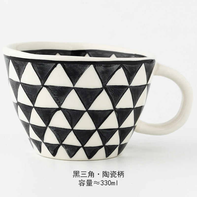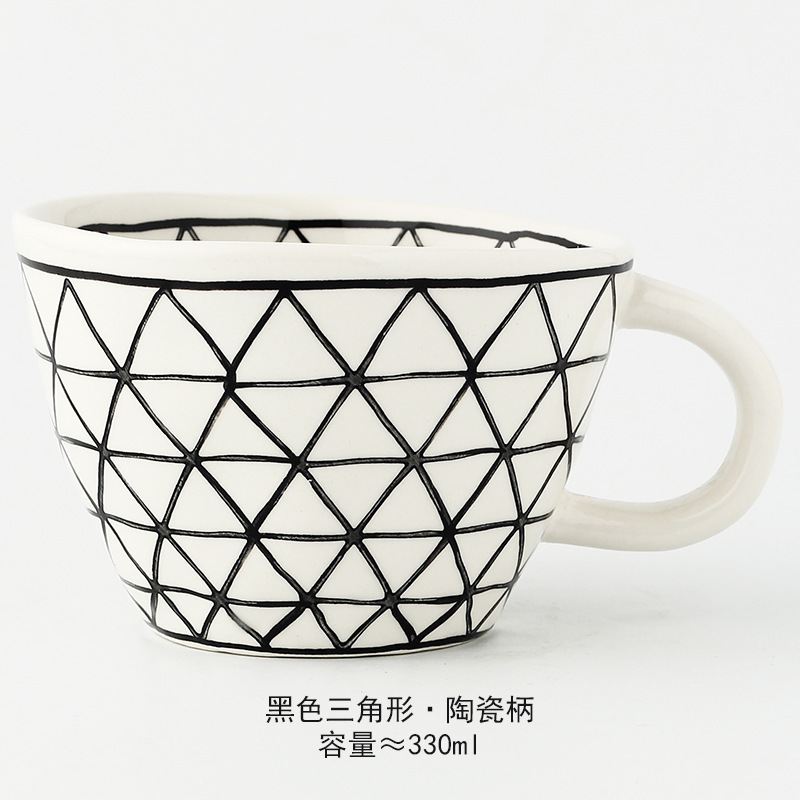 일본식 기하학적 손으로 반죽하는 불규칙한 넓은 입 세라믹 머그잔 손으로 그린 언더 유약 컬러 아침 우유 오트밀 컵스토어 가기
