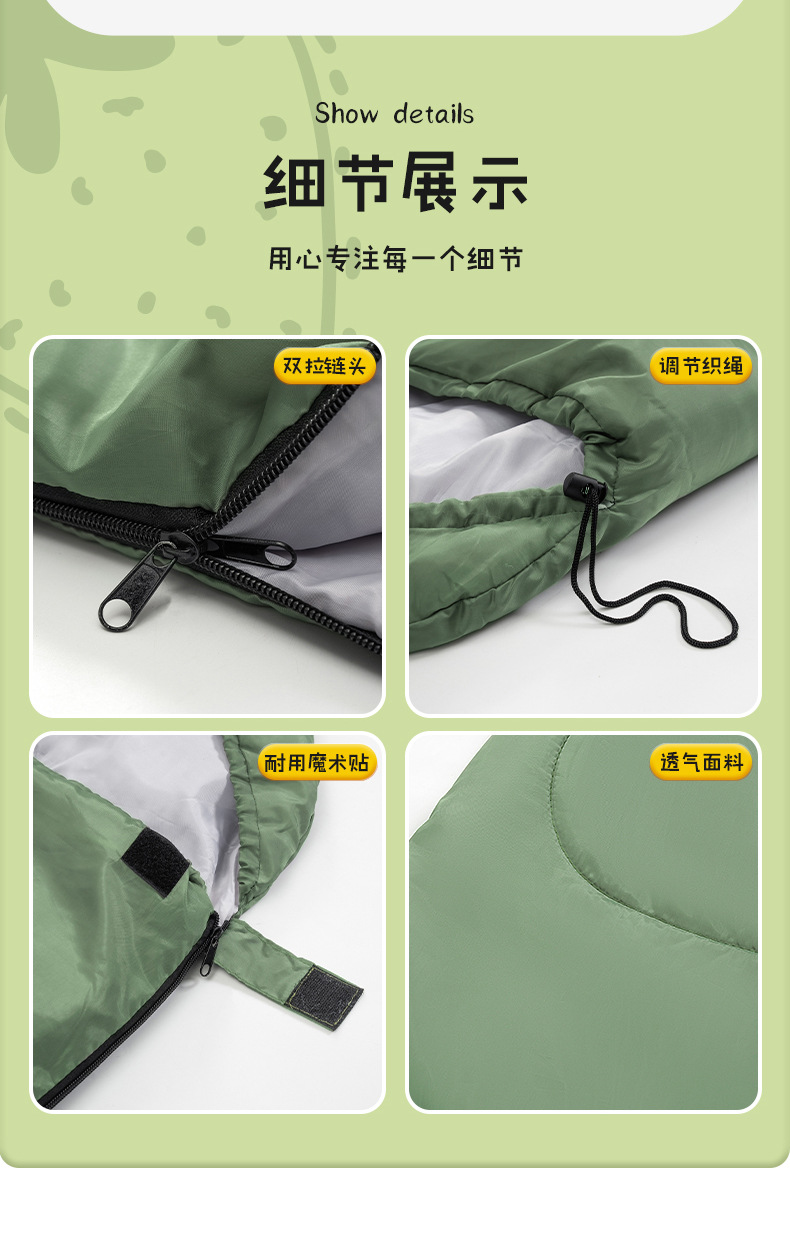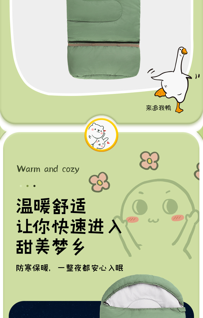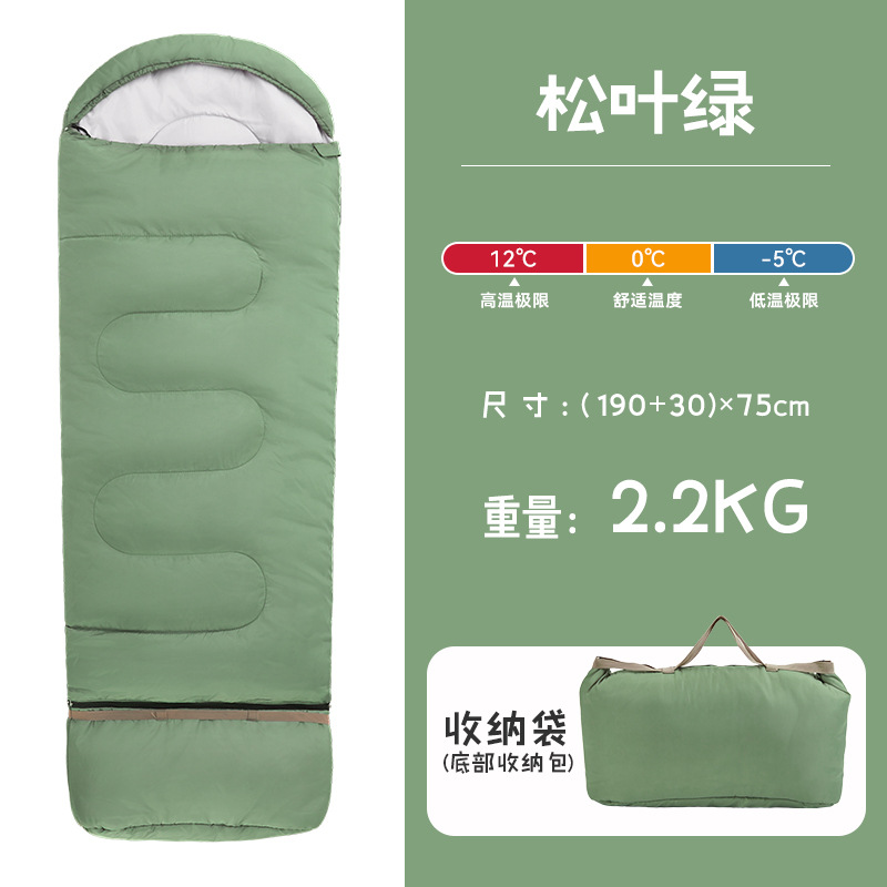 야외용 침낭 성인용 봉투형 휴대용 캠핑 침낭 두꺼운 방한 가을 겨울 사무실 점심시간 따뜻한 침낭
