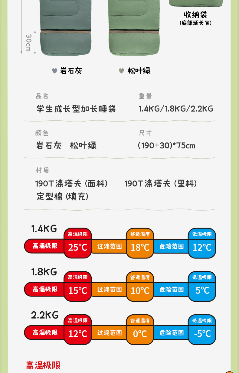 • 2.2kg 소나무 잎 녹색 (겨울 침낭)