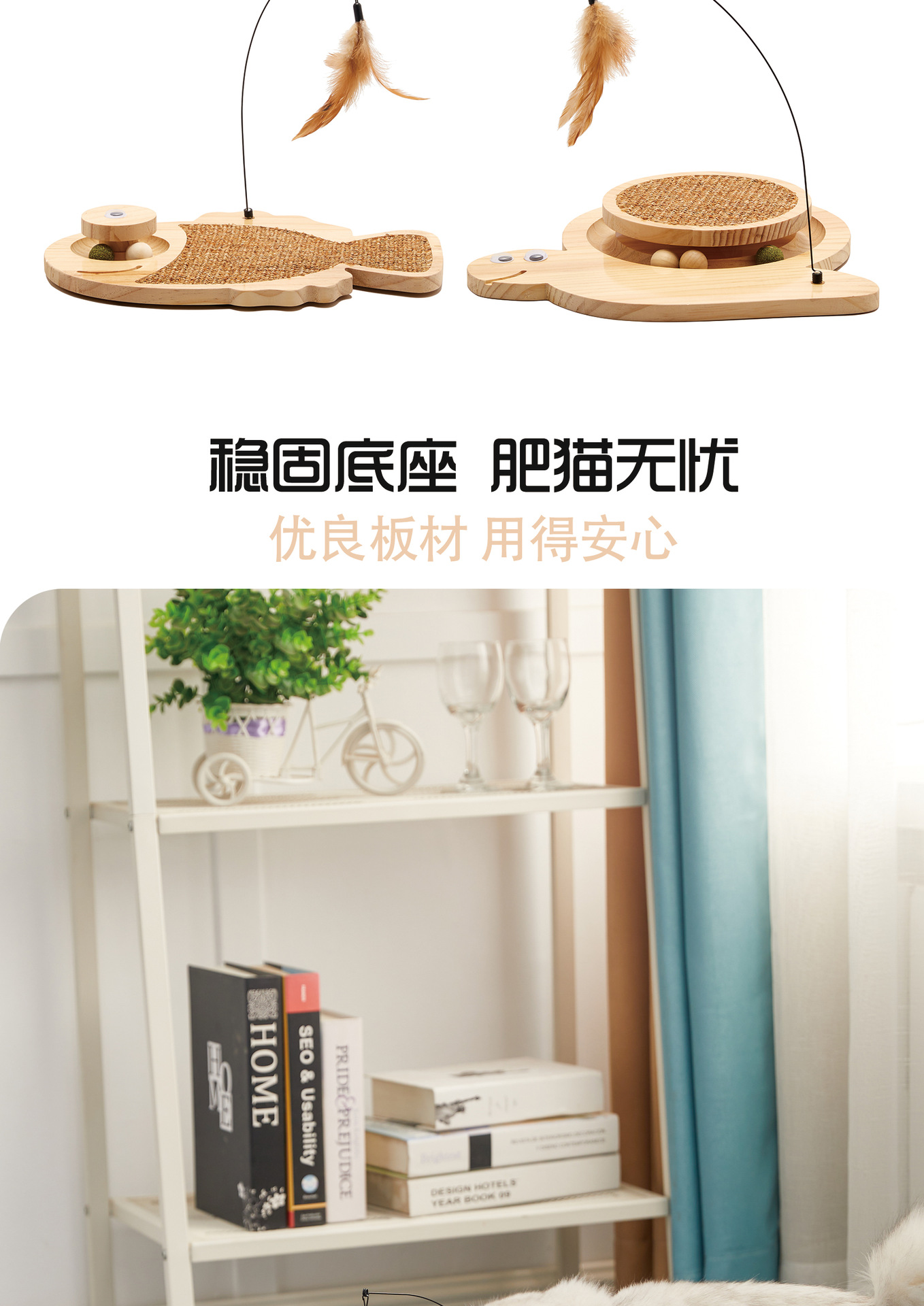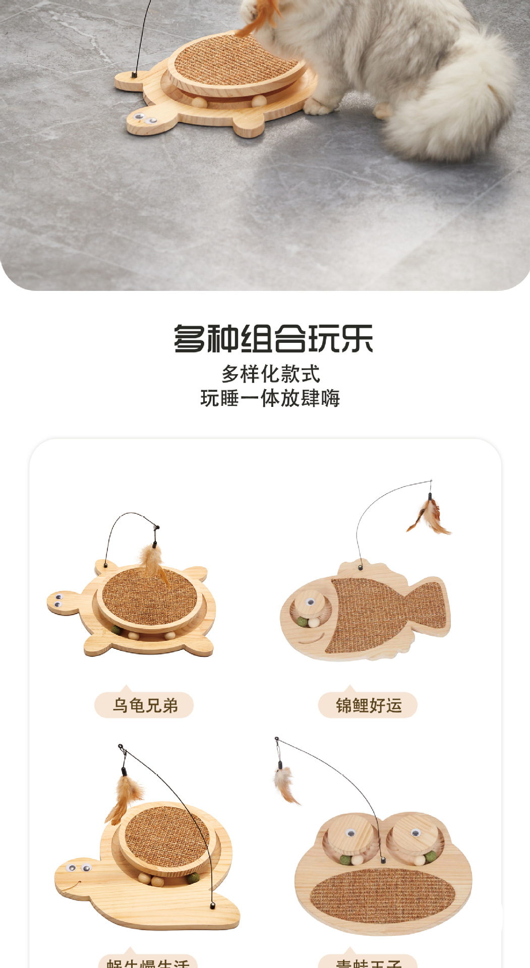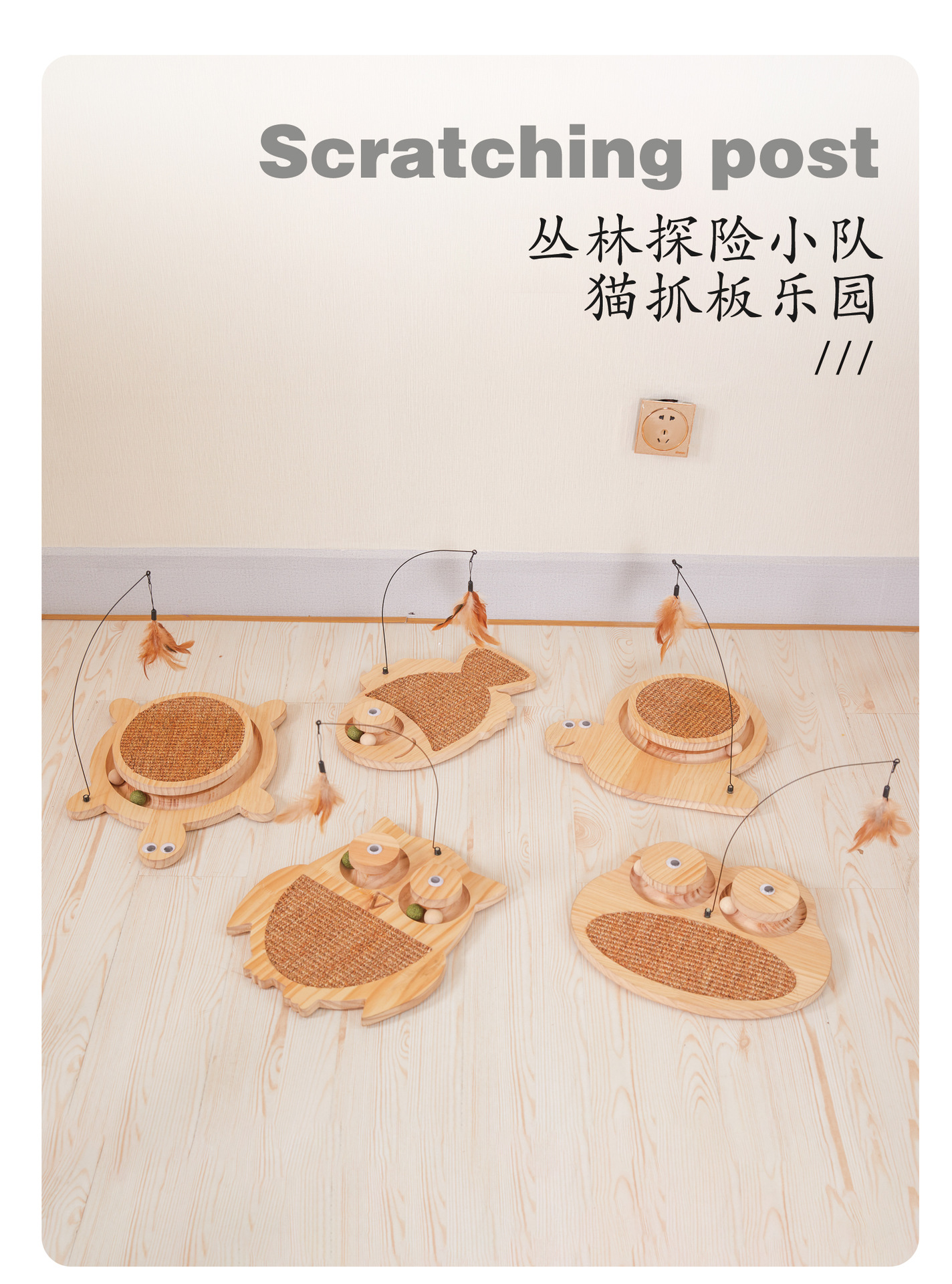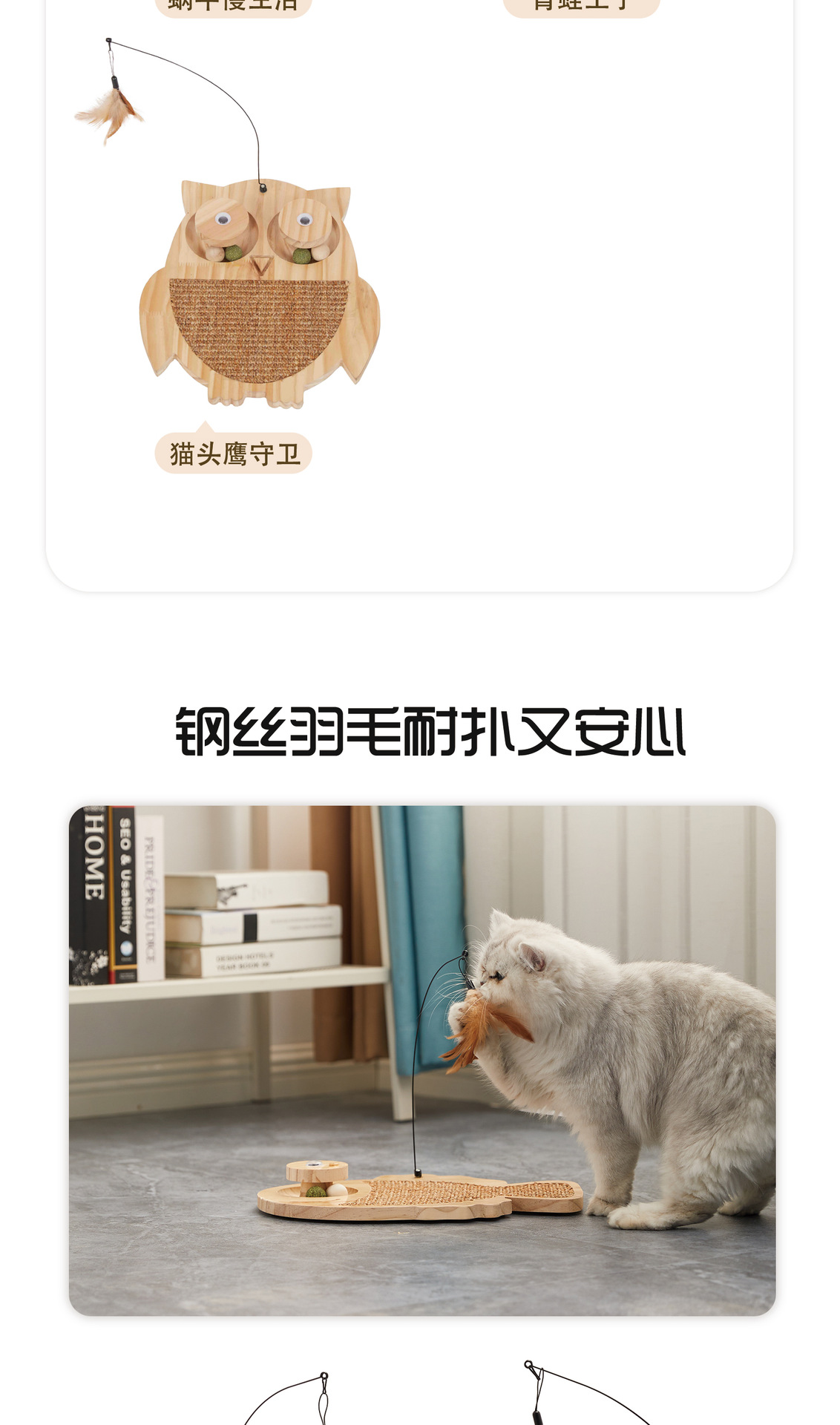 귀여운 동물 모양 고양이 스크래쳐, 깃털 고양이 장난감, 고양이 발톱갈이, 소형 미끄럼 방지 도매 만화 스타일스토어 가기