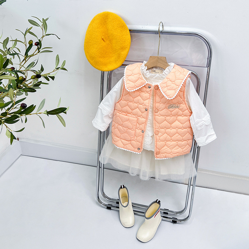 가을과 겨울 새로운 소녀 아기 샤넬 스타일 조끼 기모 두꺼운 조끼 재킷