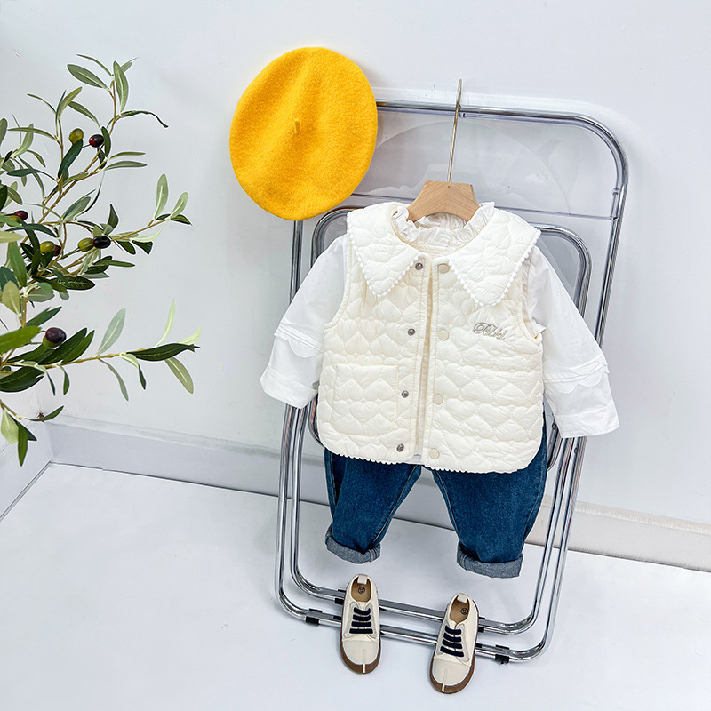 가을과 겨울 새로운 소녀 아기 샤넬 스타일 조끼 기모 두꺼운 조끼 재킷스토어 가기