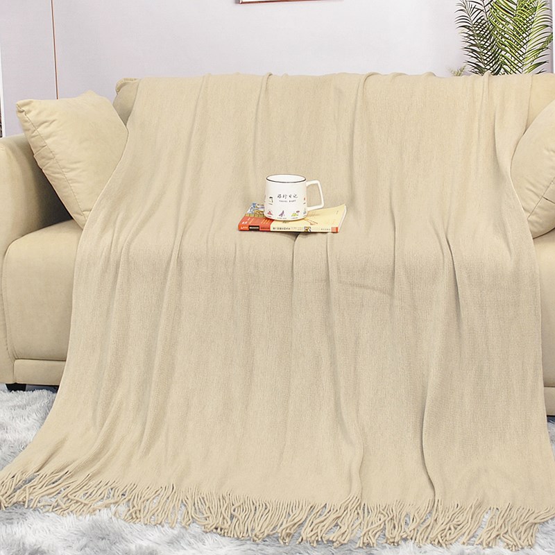 북유럽 스타일 단색 니트 담요, 프린지 소파 담요, 침대 끝 담요, 민슈쿠 침대 끝 타월, 두꺼운 담요 도매