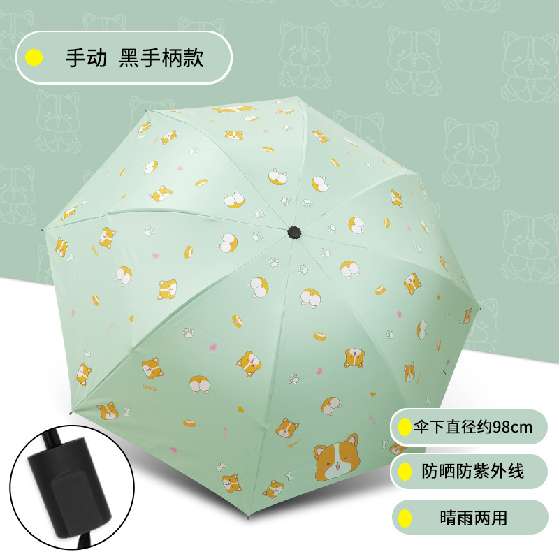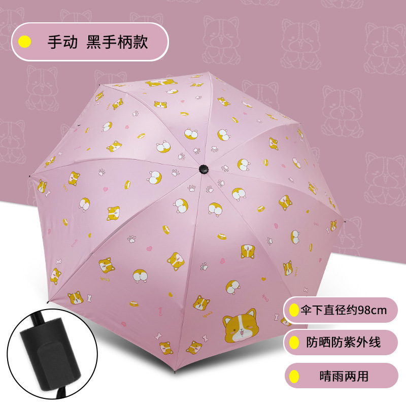 사랑 천칭 만화 자동 우산 코기 오리 햇살과 비 이중 사용 접는 우산 작은 공룡 차양 태양 우산스토어 가기