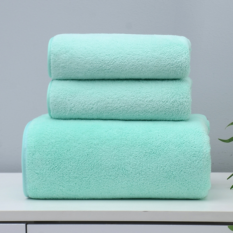 양게 같은 스타일 수건 목욕 타월 3 조각 세트 산호 양털 세트 순면보다 더 부드러운 두꺼운 양모 목욕 타월
