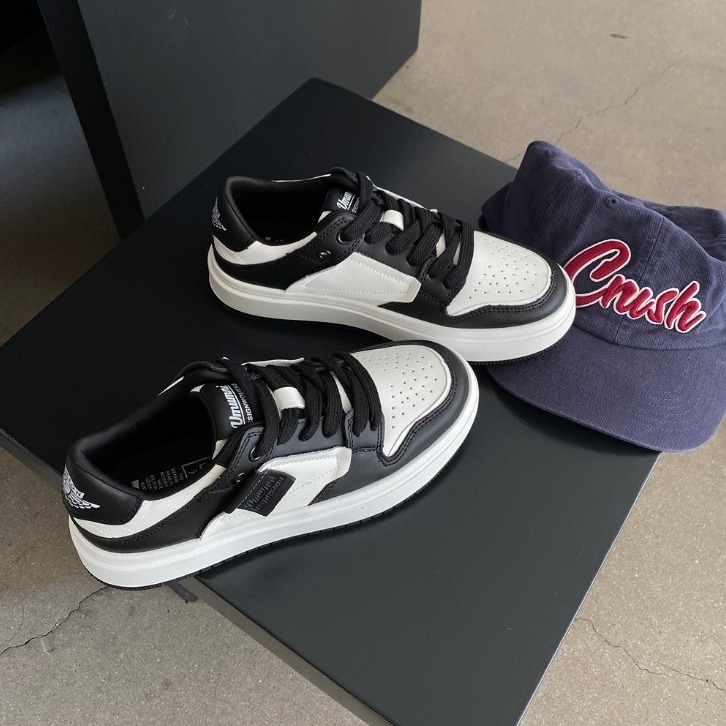 2025년 신상 한국 스타일 인기 두꺼운 밑창 천연 가죽 화이트 슈즈 여성용 시크 다용도 학생 배색 스니커즈