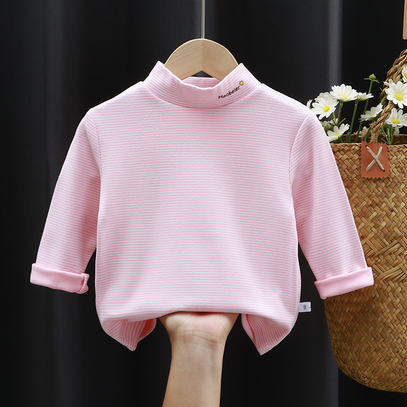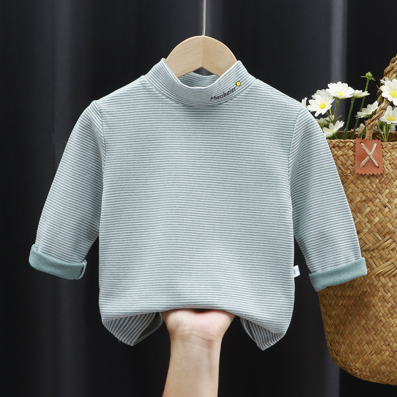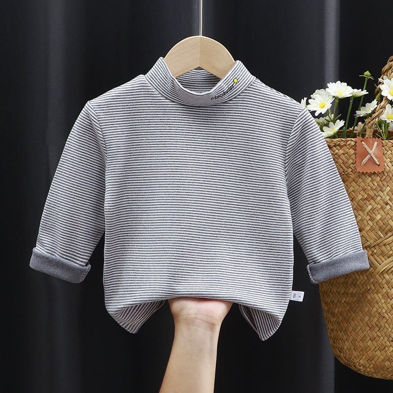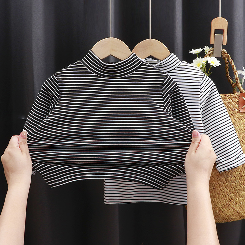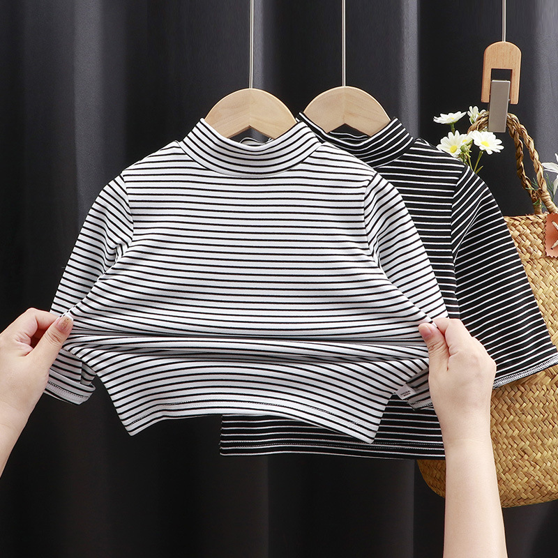 가을과 겨울 어린이 벨벳 바닥 셔츠 소년과 소녀 세미 하이 칼라 긴 소매 스트라이프 탑 아기의 인쇄 탄성 인테리어스토어 가기