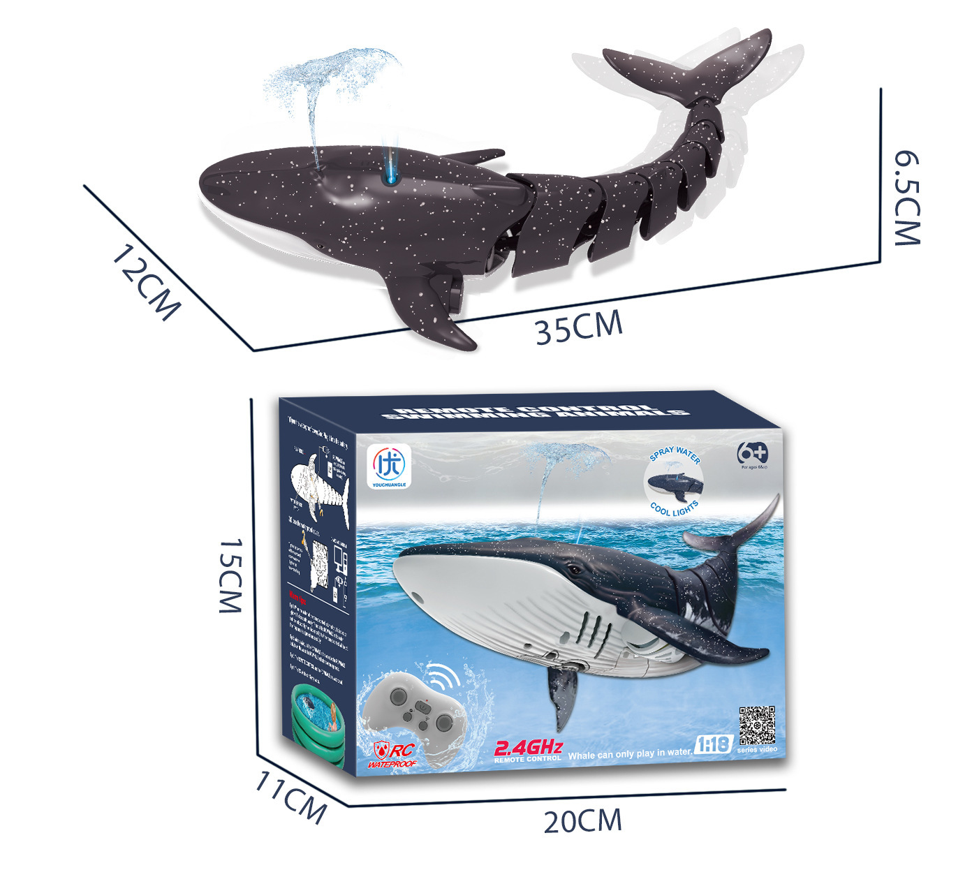 • 원격 제어 물 고래 [다크 브라운]