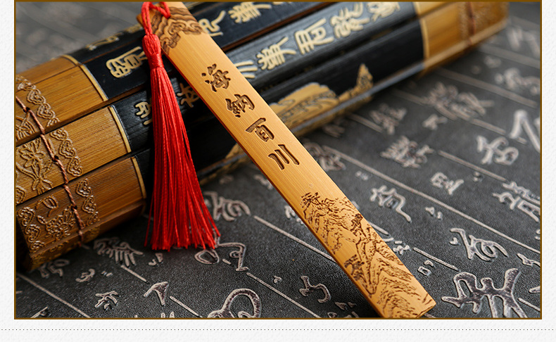 감동적인 유명한 단어 새겨진 중국 스타일 창조적 인 작은 선물 여행 기념품 황금 목록 제목 대나무 북마크스토어 가기