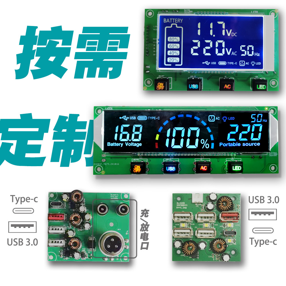 인버터 디스플레이 LED LCD 화면 DC AC 전압 스위치 제어 USB 빠른 충전 QC3.0