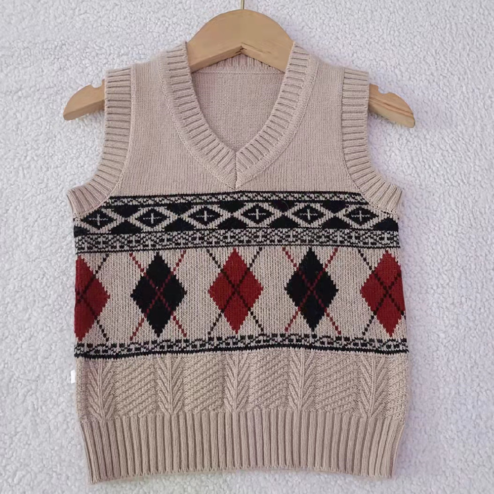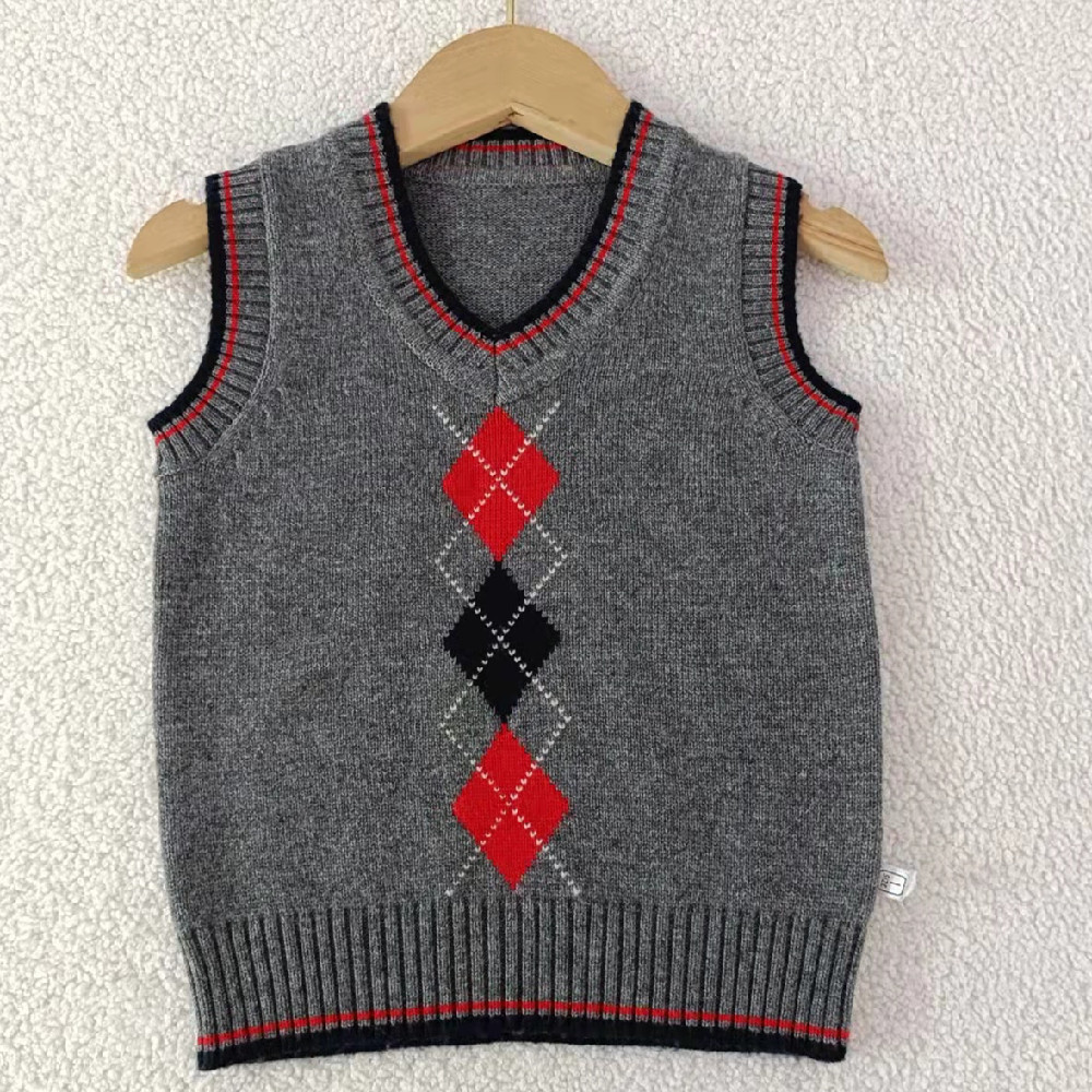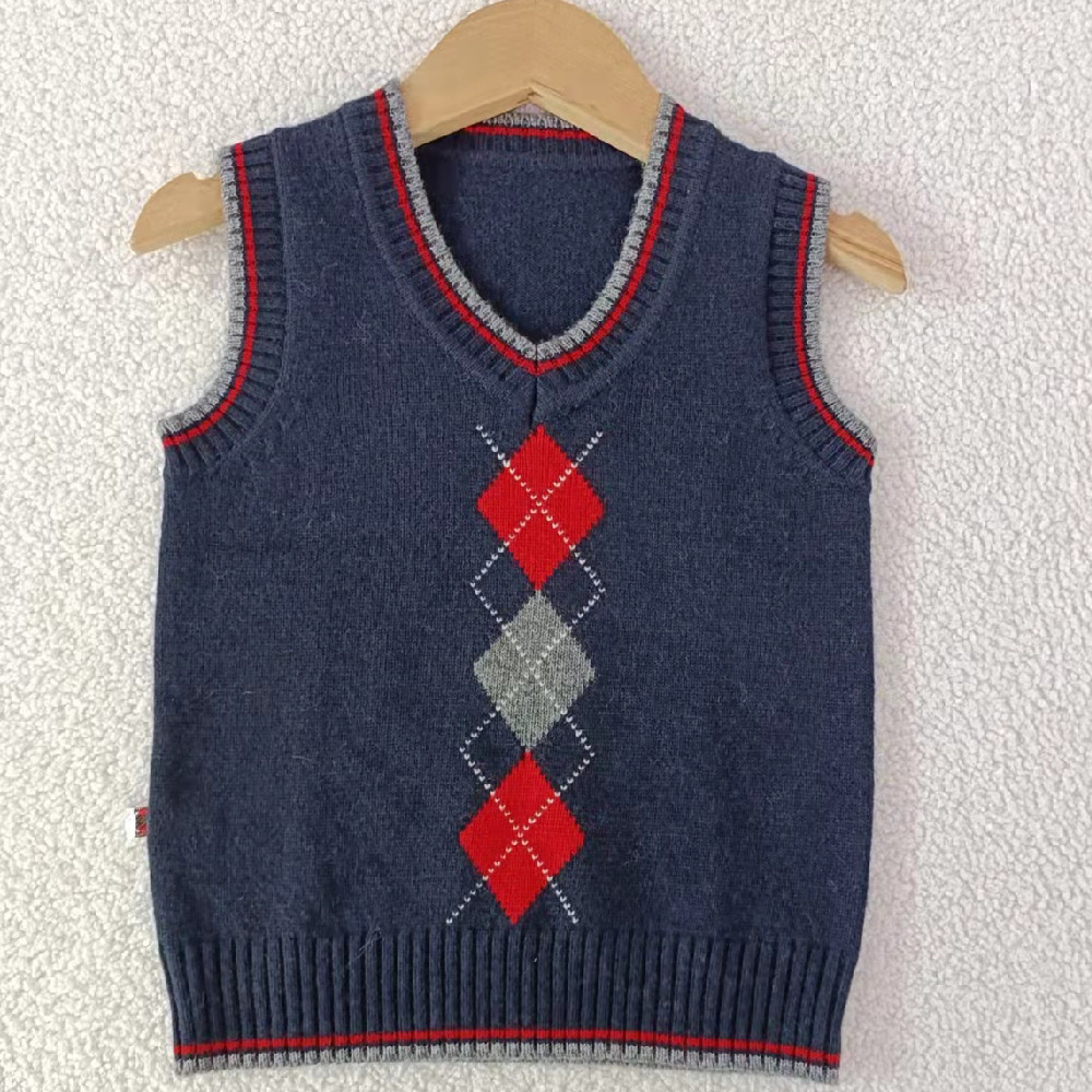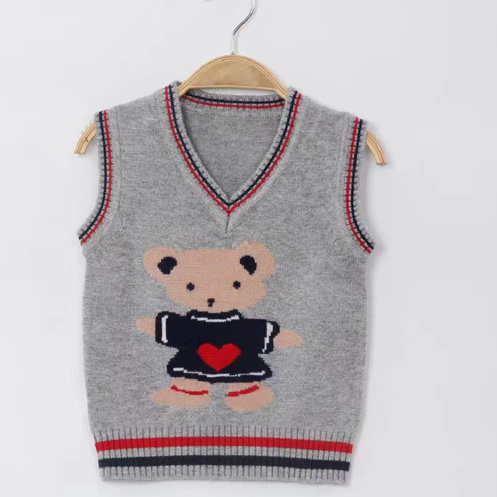 재고 도매 어린이 말 클립 캐시미어 스웨터 가을과 겨울 니트 V-넥 풀오버 민소매 조끼 소년의 스웨터 말 클립