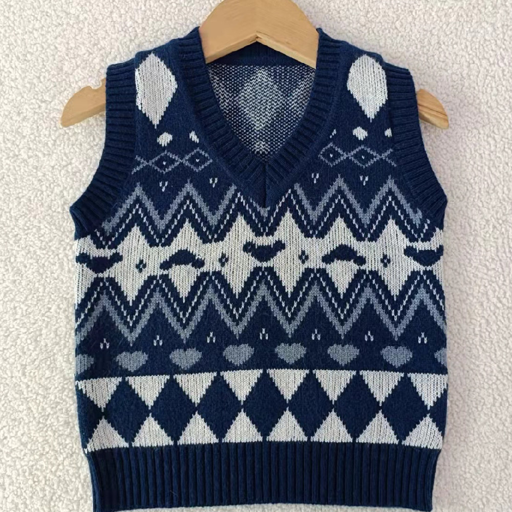 재고 도매 어린이 말 클립 캐시미어 스웨터 가을과 겨울 니트 V-넥 풀오버 민소매 조끼 소년의 스웨터 말 클립스토어 가기