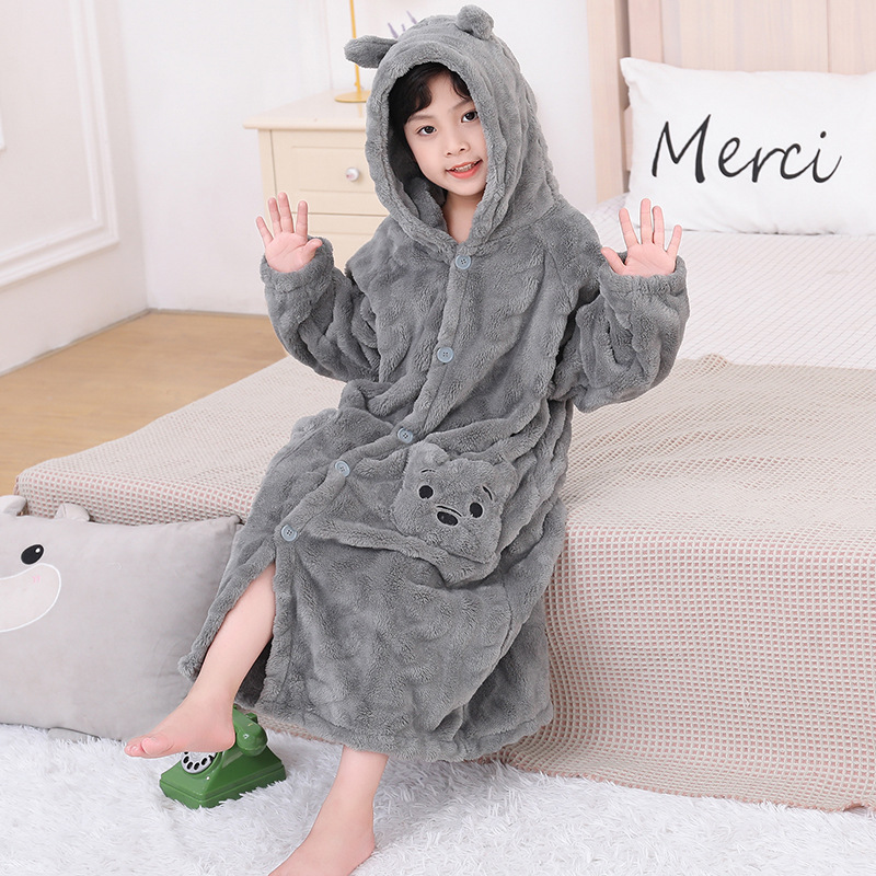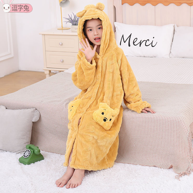 컷 플라워 어린이 잠옷 두꺼운 부모-자식 잠옷 대형 어린이 플란넬 곰 가을과 겨울 후드 목욕 가운스토어 가기