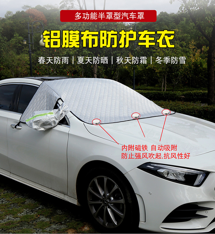 【产品特点】:镀铝膜材质,不伤车漆,防晒、隔热、防雨雪、防风尘、防划痕、防紫外线、抗拉力强。