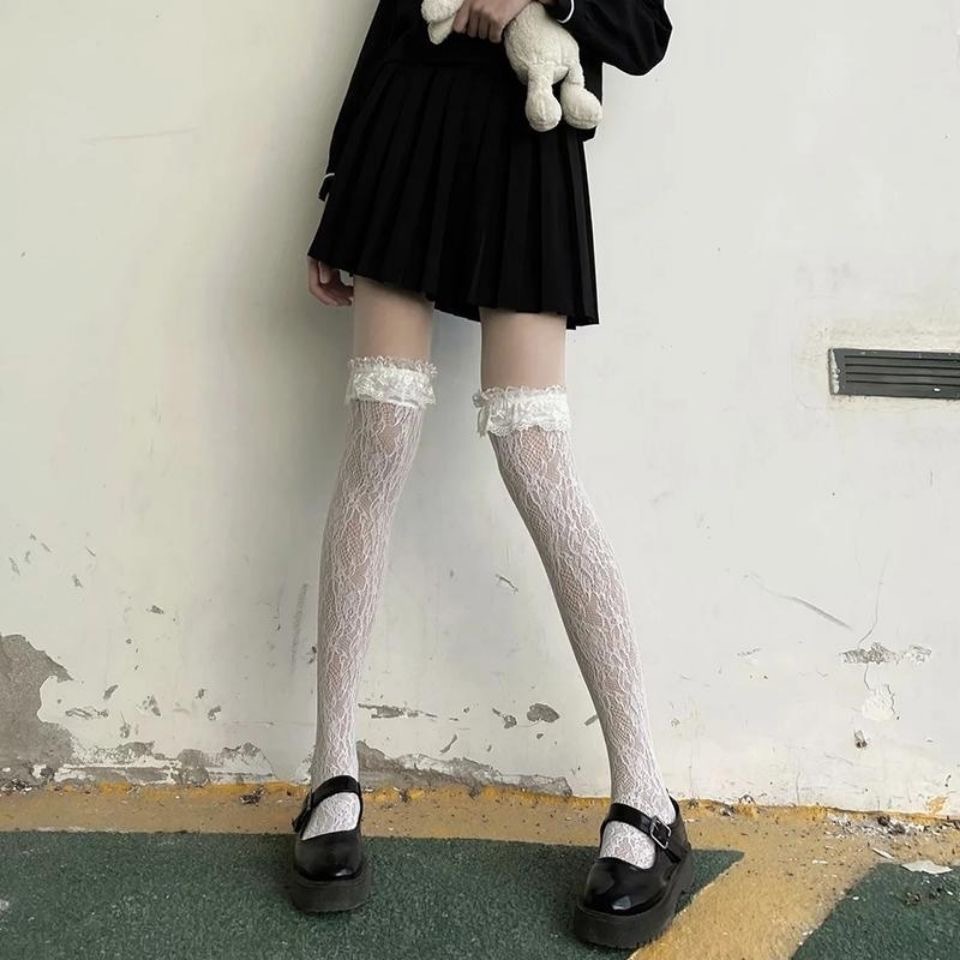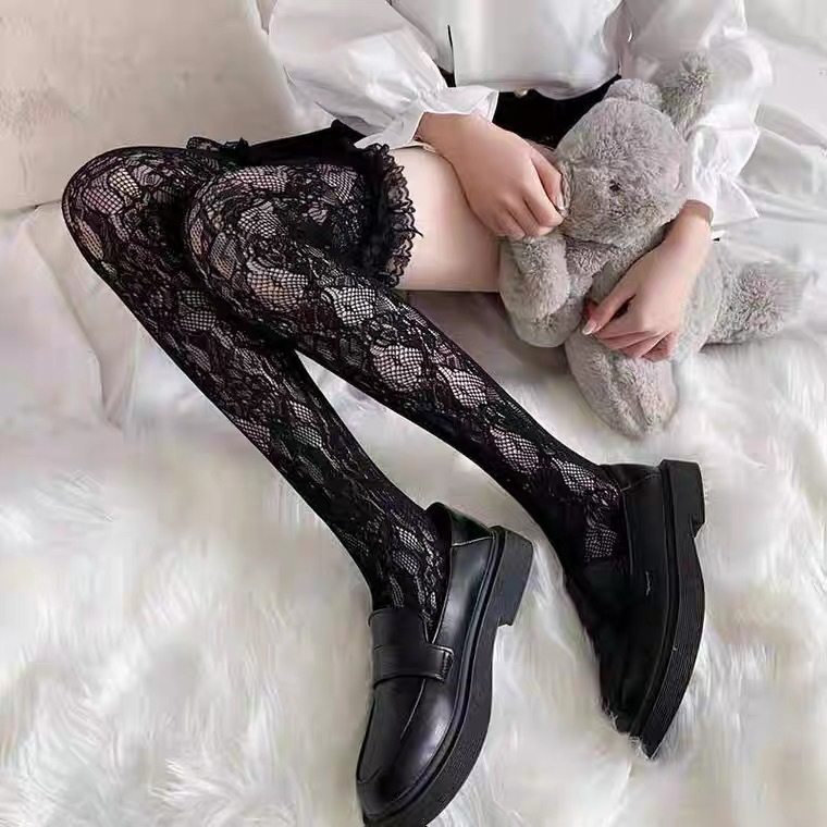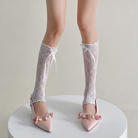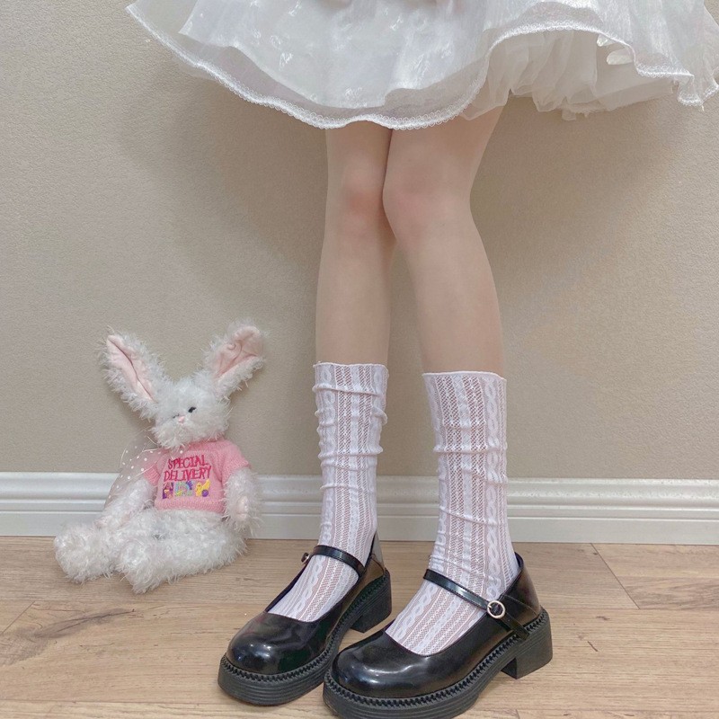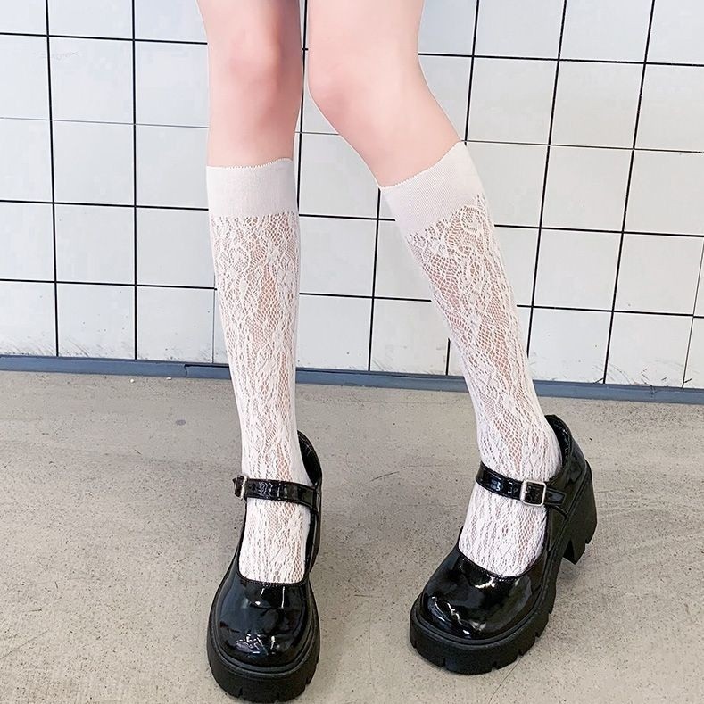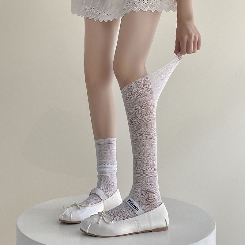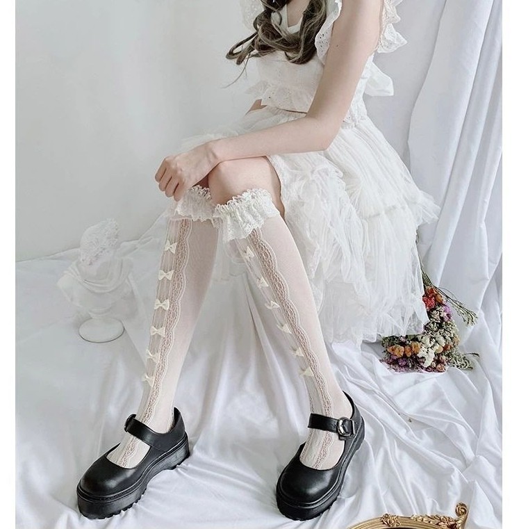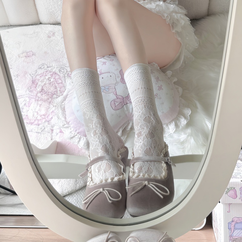 화이트 레이스 로리타 새끼 양말 여성용 중간 길이 양말 jk 긴 레이스 일본식 팬티 스타킹 반 다리 로리타스토어 가기