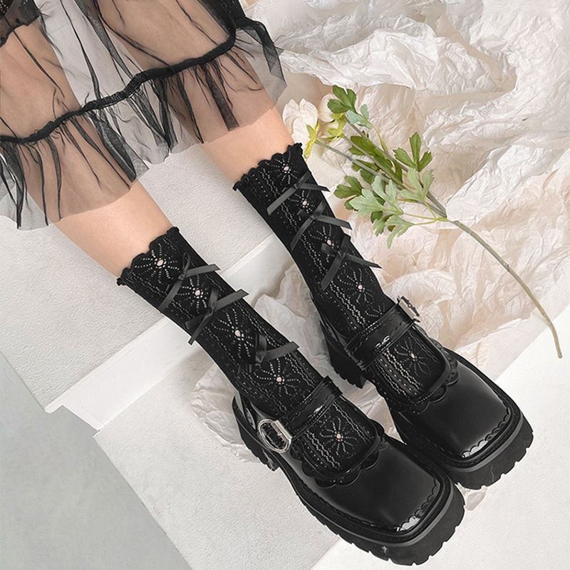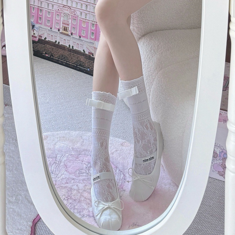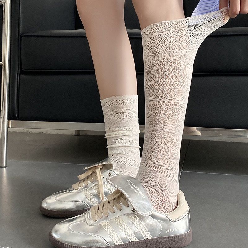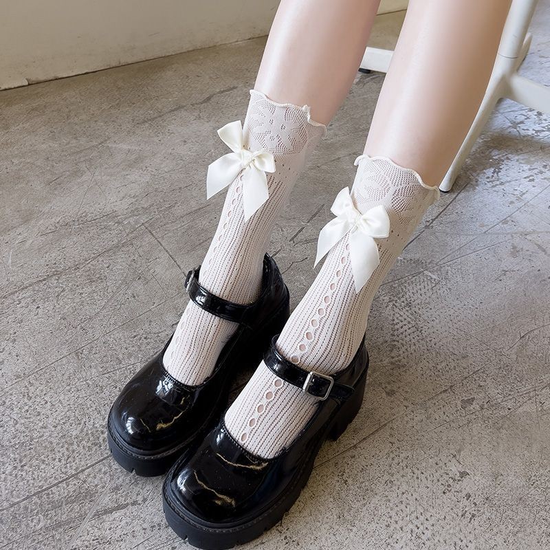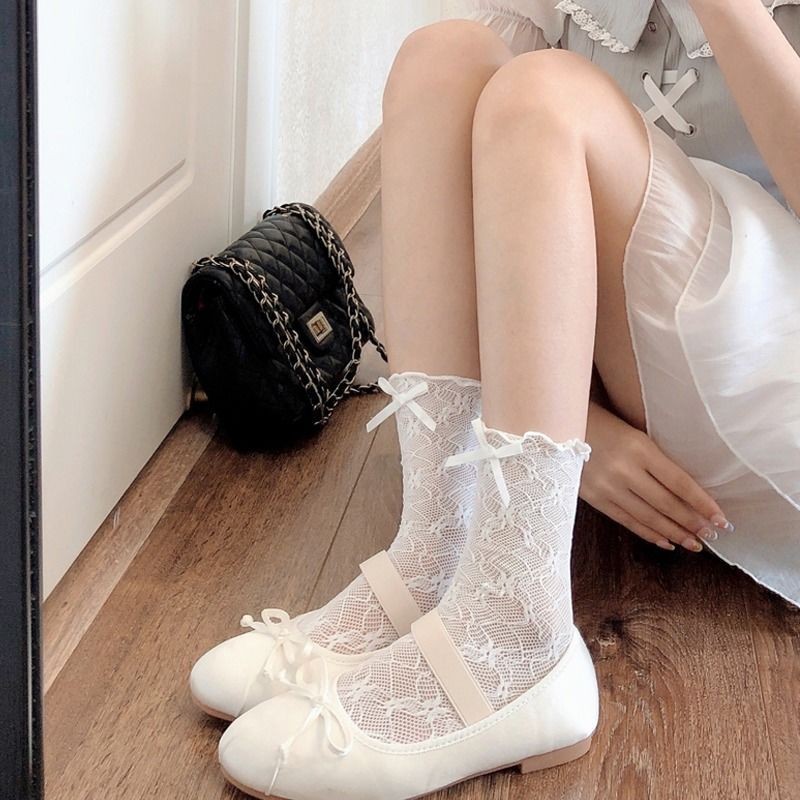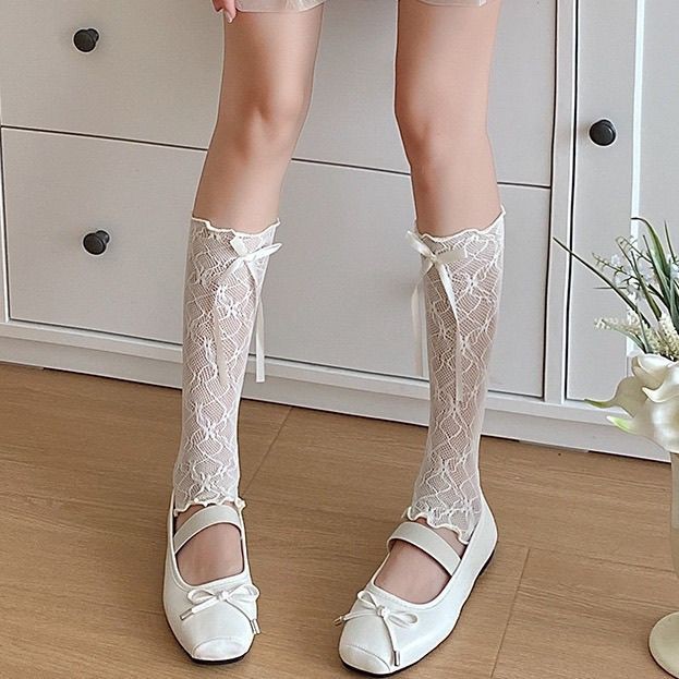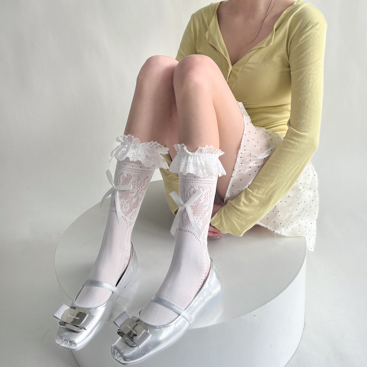 화이트 레이스 로리타 새끼 양말 여성용 중간 길이 양말 jk 긴 레이스 일본식 팬티 스타킹 반 다리 로리타스토어 가기