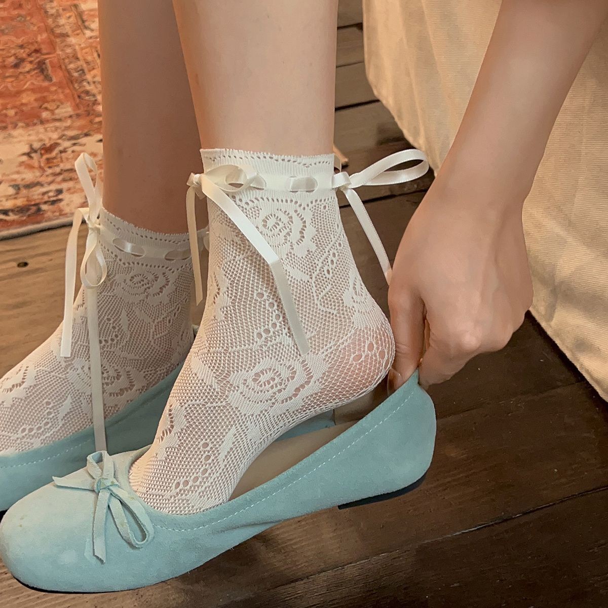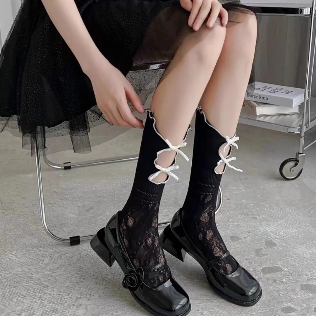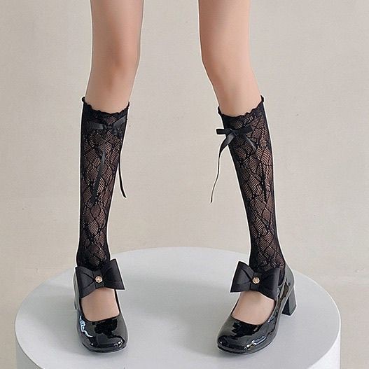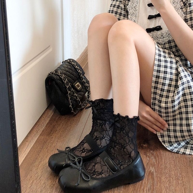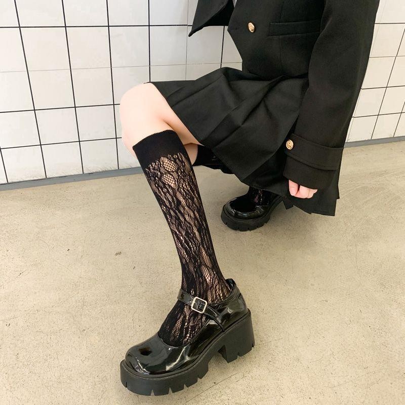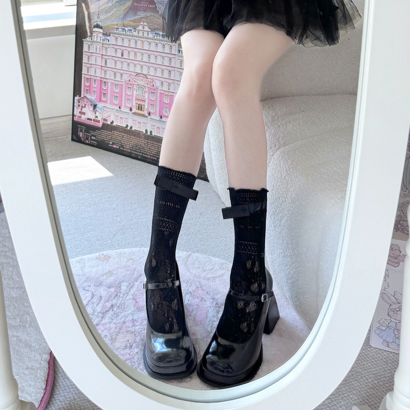 화이트 레이스 로리타 새끼 양말 여성용 중간 길이 양말 jk 긴 레이스 일본식 팬티 스타킹 반 다리 로리타스토어 가기