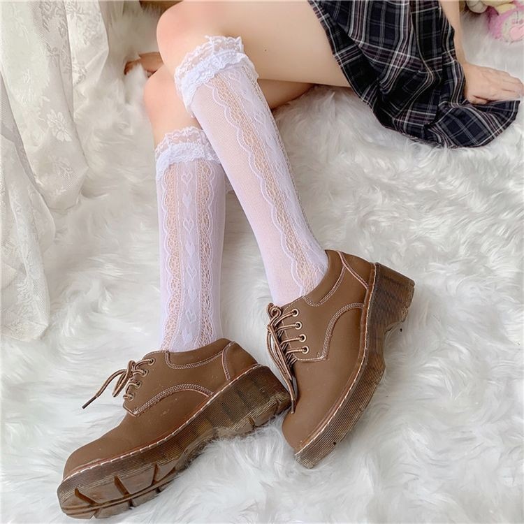 화이트 레이스 로리타 새끼 양말 여성용 중간 길이 양말 jk 긴 레이스 일본식 팬티 스타킹 반 다리 로리타