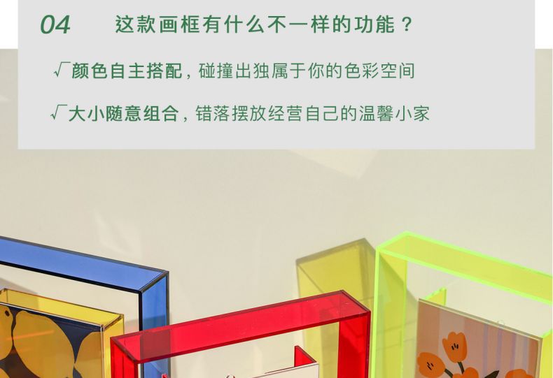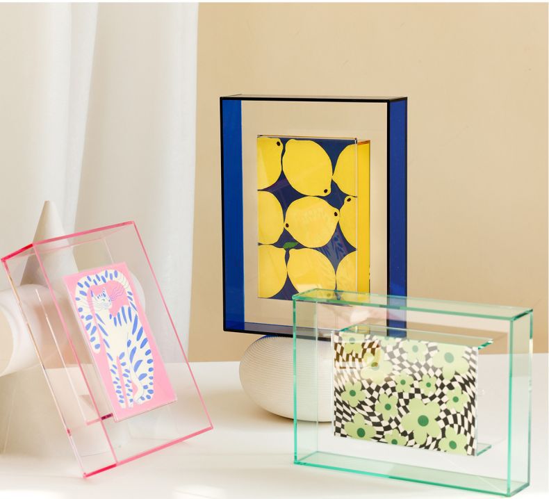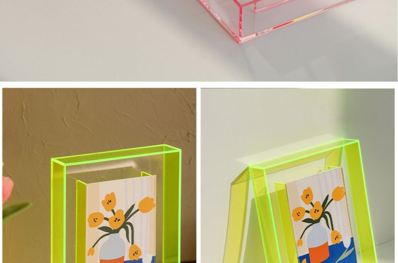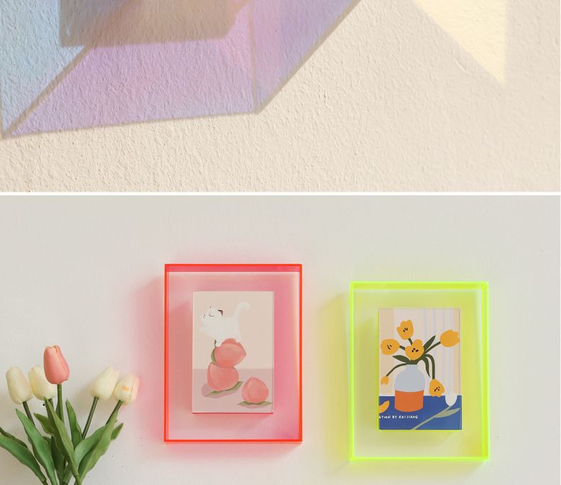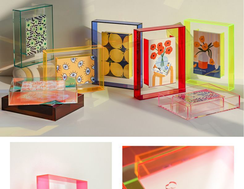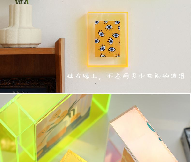 다채로운 레이저 아크릴 사진 프레임 테이블 사진 프레임 6inch 투명 기능 스타일 사진 디스플레이 상자 사용자 정의스토어 가기