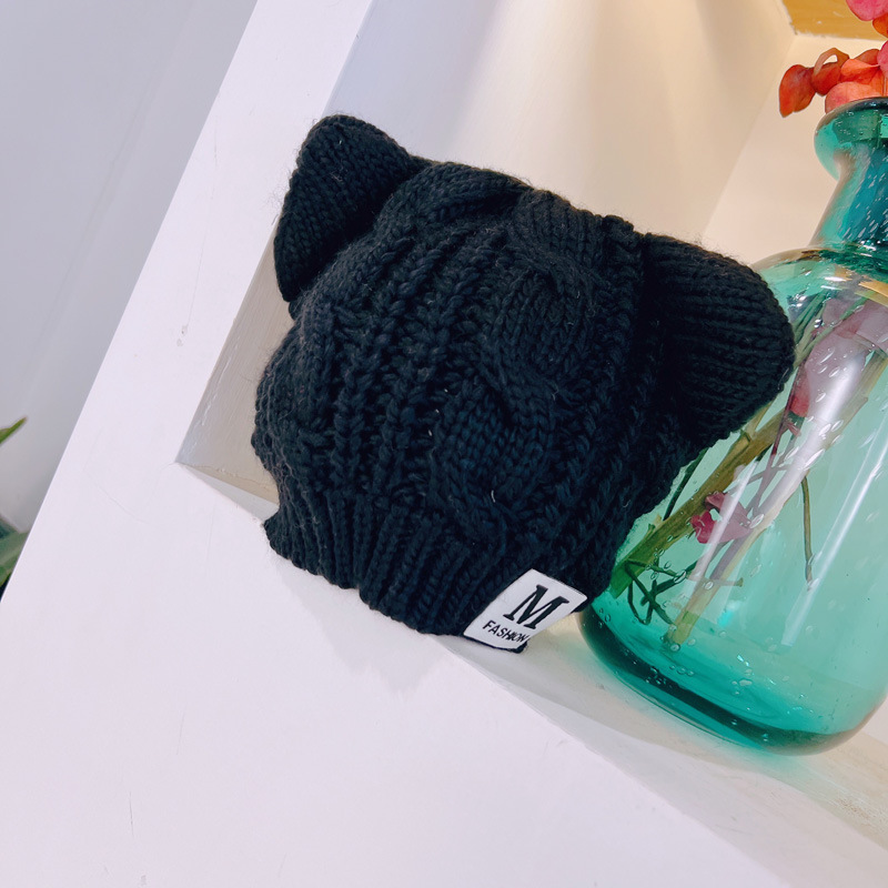 귀여운 슈퍼 귀여운 만화 고양이 귀 양모 모자 M-마크 가을과 겨울 따뜻한 귀 보호 수제 니트 모자 어린이 모자 모든 경기