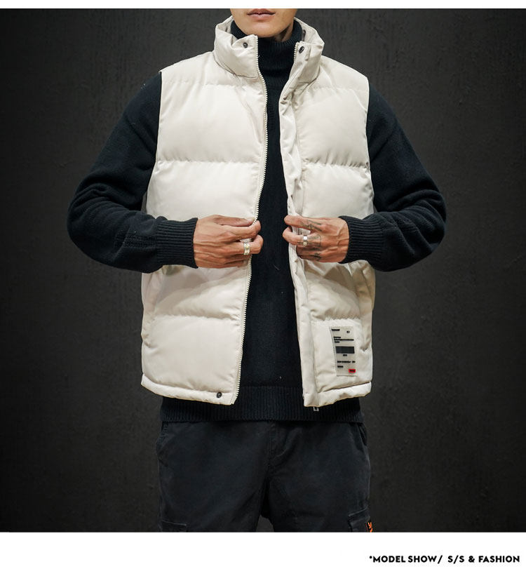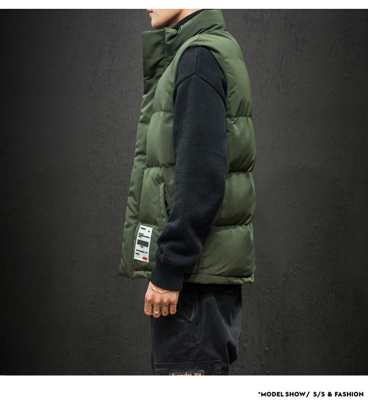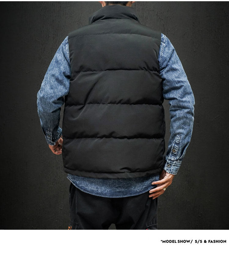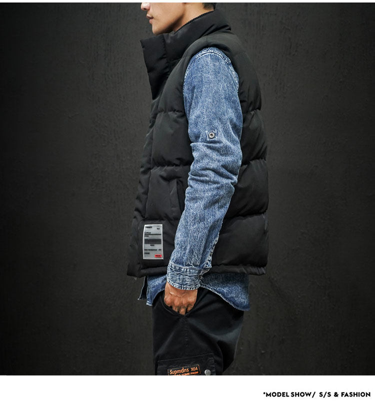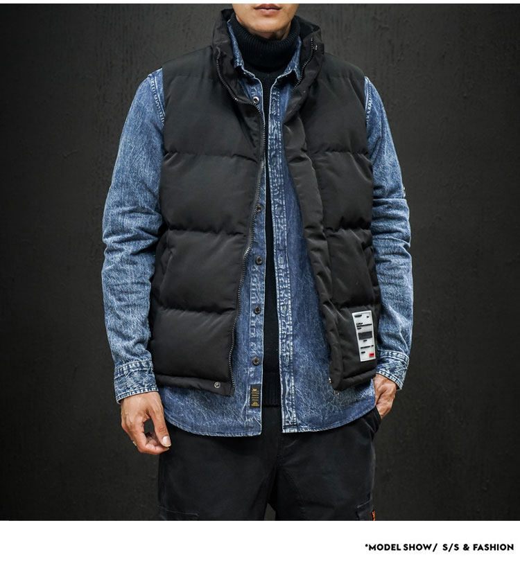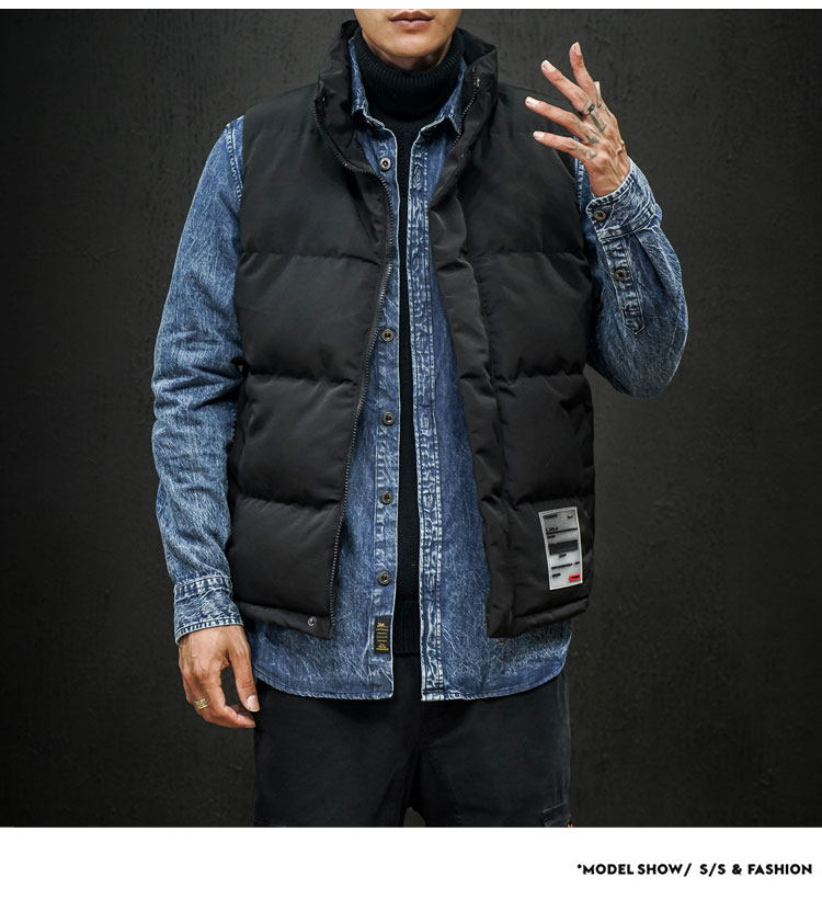 조끼 남자의 가을과 겨울 다운 면 유행 느슨한 칼라 조끼 코트 두꺼운 따뜻한 단색 조끼 조끼스토어 가기