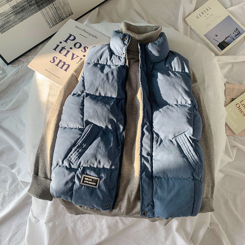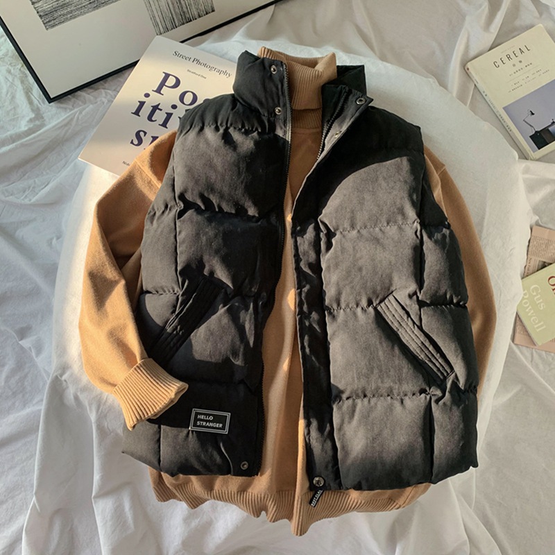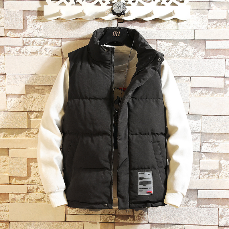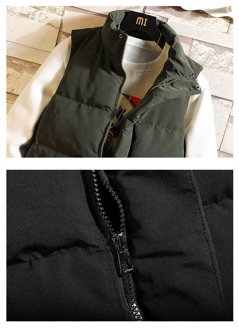 조끼 남자의 가을과 겨울 다운 면 유행 느슨한 칼라 조끼 코트 두꺼운 따뜻한 단색 조끼 조끼