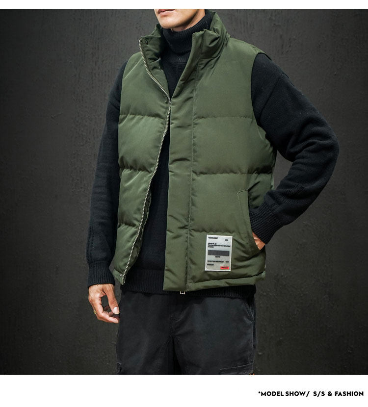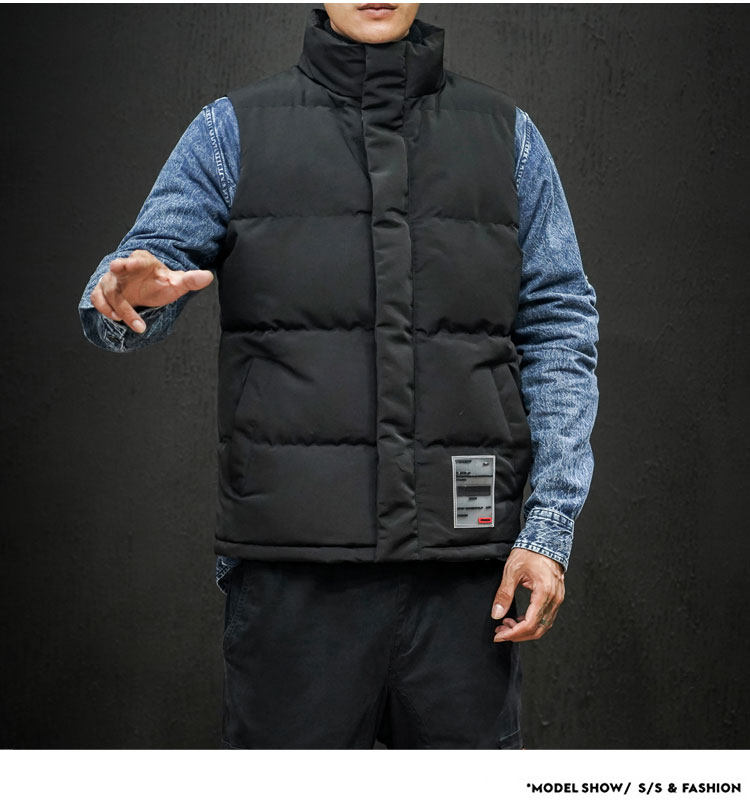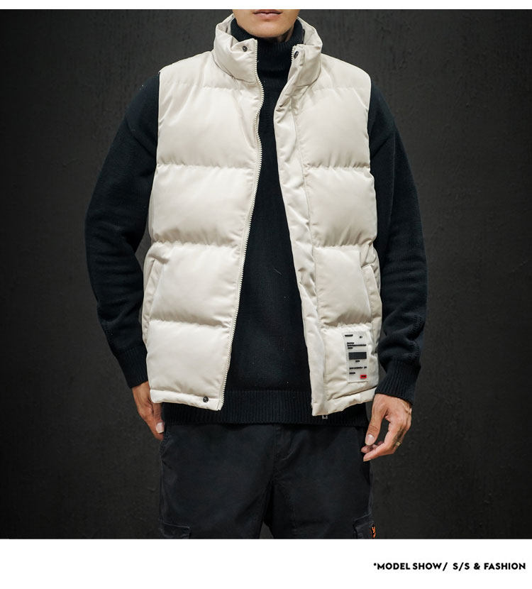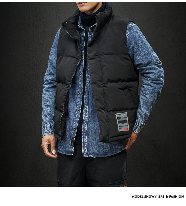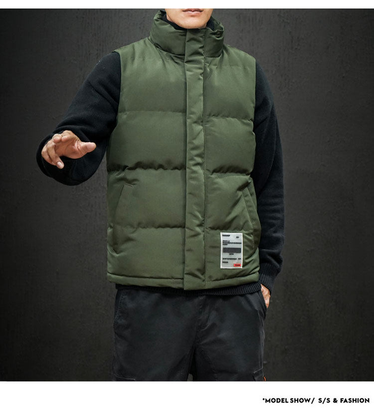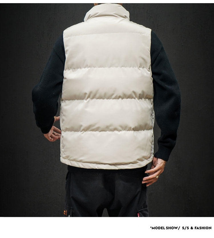 马甲男士秋冬季羽绒棉潮流宽松立领背心外套加厚保暖纯色坎肩马夹