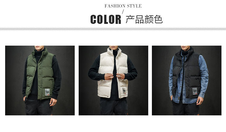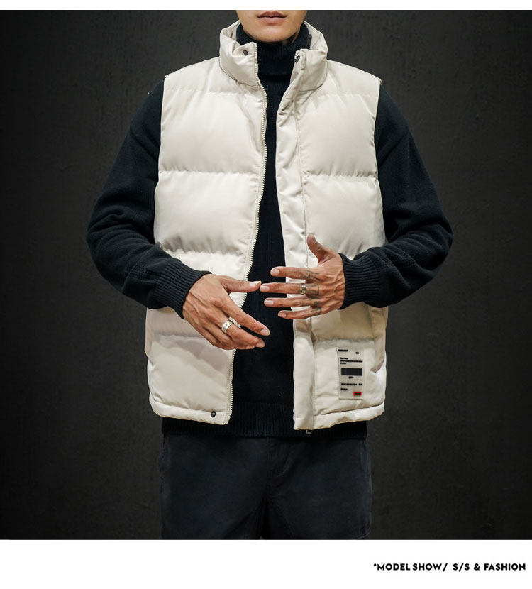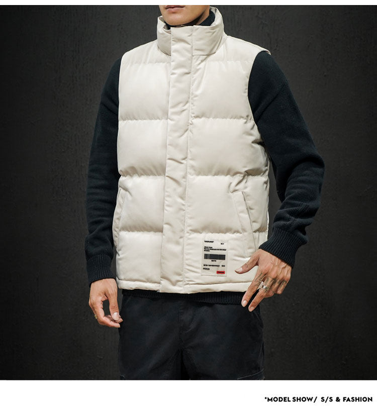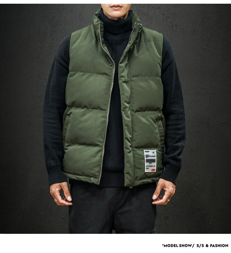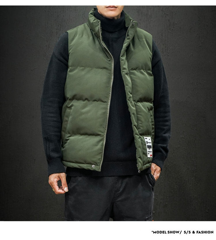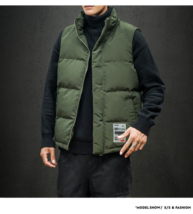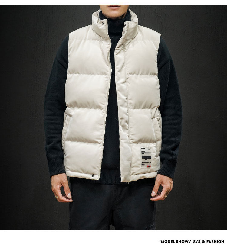 马甲男士秋冬季羽绒棉潮流宽松立领背心外套加厚保暖纯色坎肩马夹
