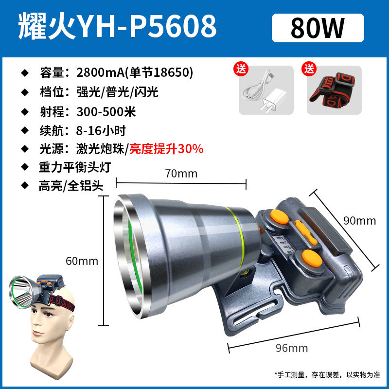 야오 화재 중력 균형 헤드 램프 대외 무역 모든 알루미늄 헤드 큰 스팟 슈퍼 대형 레이저 총 손전등 공장 도매