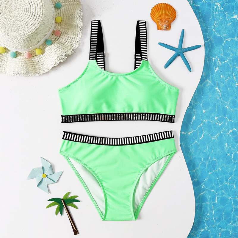 크로스 보더 새로운 여아 수영복 스플릿 스포츠 아기 슬링 소형, 중형 및 대형 어린이 수영복 녹색 어린이 비키니