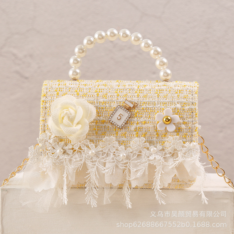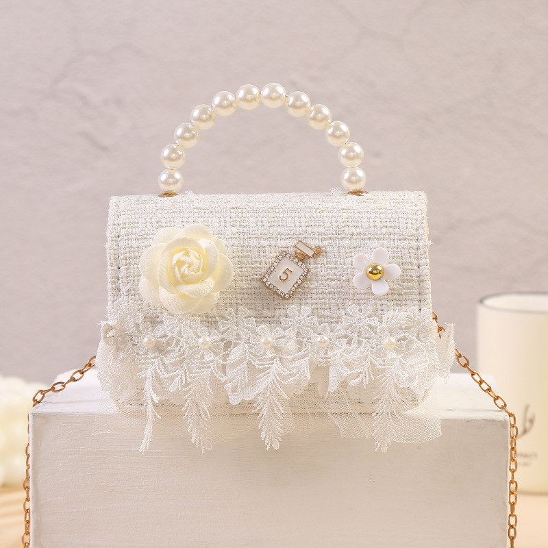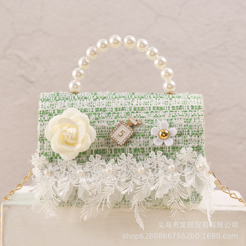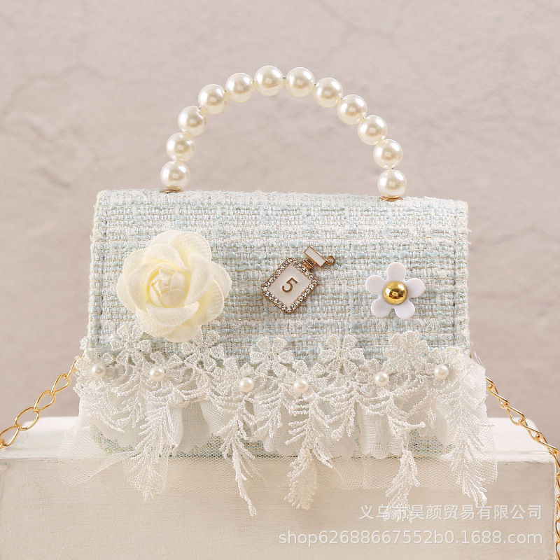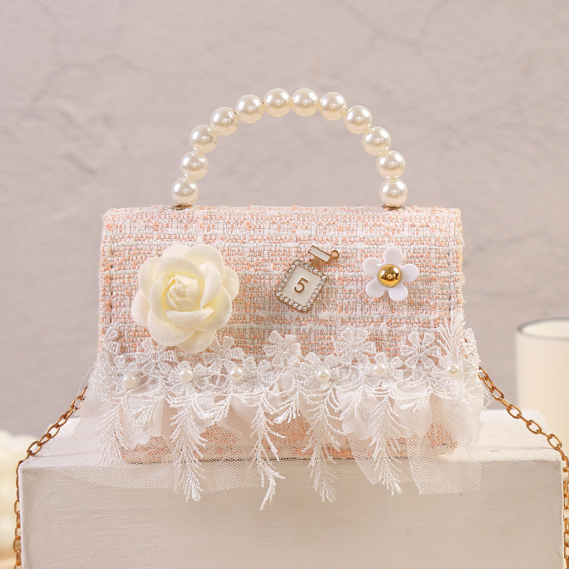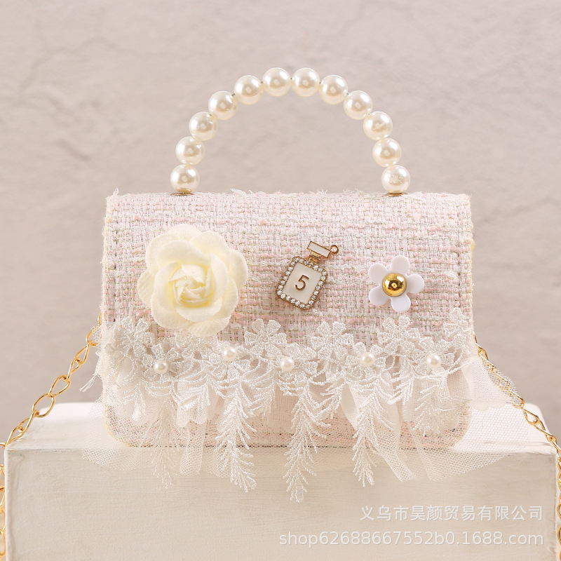 샤넬 스타일의 새로운 눈송이 벨벳 휴대용 진주 크로스 바디 이중 사용 어린이 가방 공주 유아 패션 가방 940