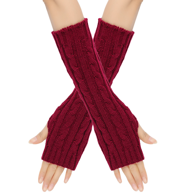 크로스 보더 긴 손가락 노출 아크릴 니트 울 장갑 가을과 겨울 따뜻한 팔 커버 남성과 여성의 트위스트 슬리브