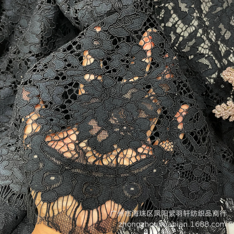 무거운 스트랜드 레이스 패브릭 의류 패브릭 속눈썹 포지셔닝 패브릭 할로우 원피스 재고 도매